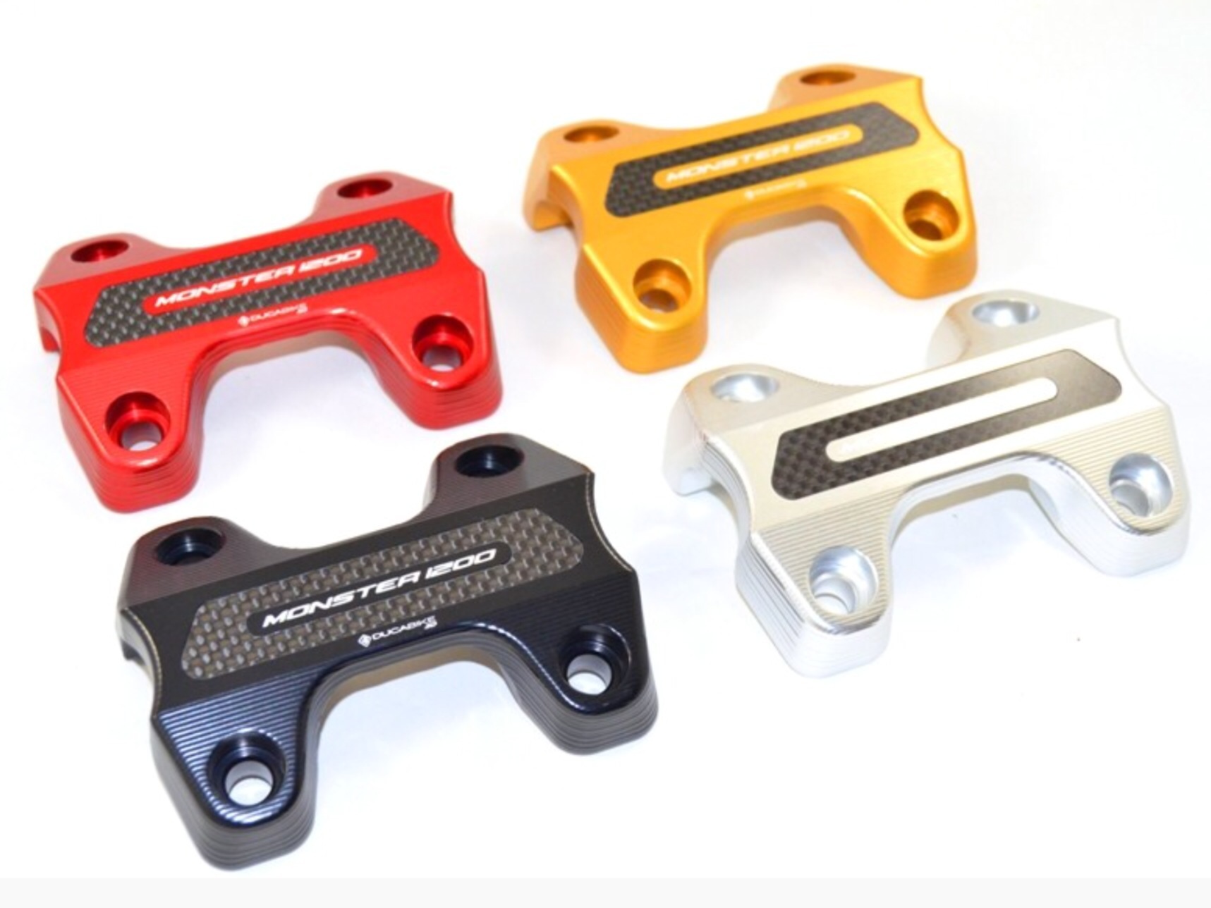 Now available, stunning Ducati Monster 1200 CNC handlebar clamps made by Ducabike CNC machined, hard anodised with carbon fibre inlay Ducabike Ducati Monster 1200 CNC Handlebar Clamp All members receive 10% discount on all Ducabike & CNC racing parts, PM us for your coupon codes. Ducabike Ducati Monster 1200 CNC Handlebar Clamp