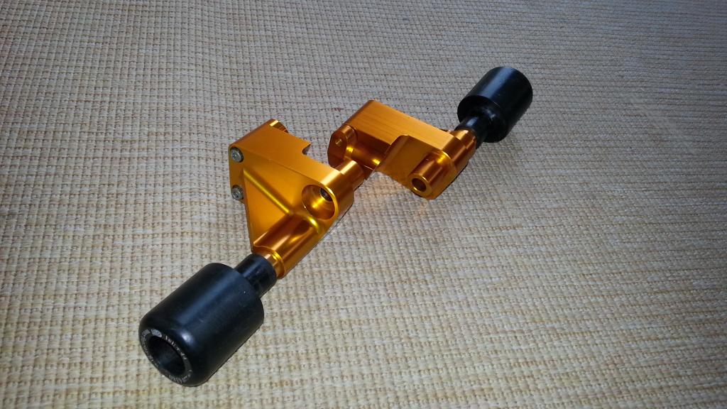 Frame sliders in gold , C/W high tensile engine bolt .... £60 posted ...