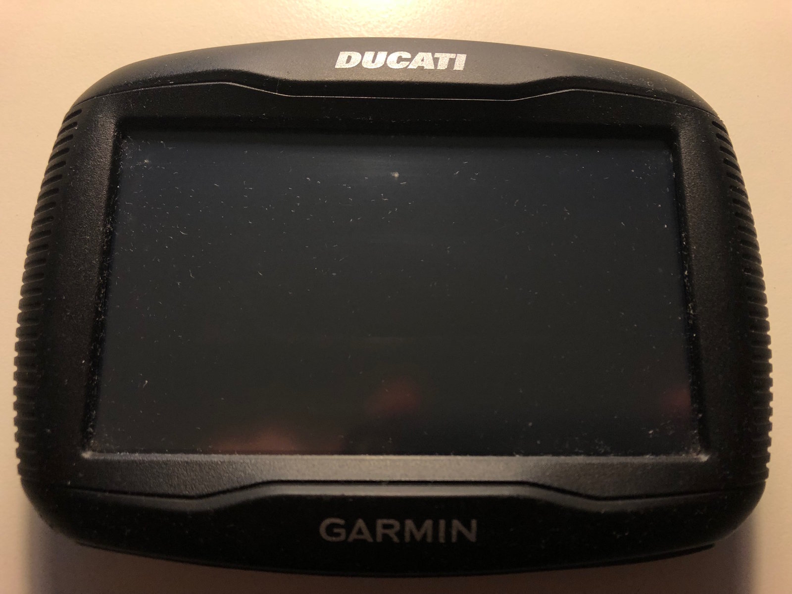 Hardly used Ducati Zumo 390LM with UK and Europe maps bought new in 2015 for £590 with Ducati mount to clip straight over central handlebar clamp of 2010-2015 Multistrada 1200 (all models) includes about 30 inches of +/- power cable. Includes the Garmin hard-wired mount as well which will obviously fit on any bike but will need a different mounting bracket. Supplied and fitted at Ducati Manchester. £250 collect Watford area or will post recorded delivery in padded box for £10 Thanks for looking, GUY 07774-137910