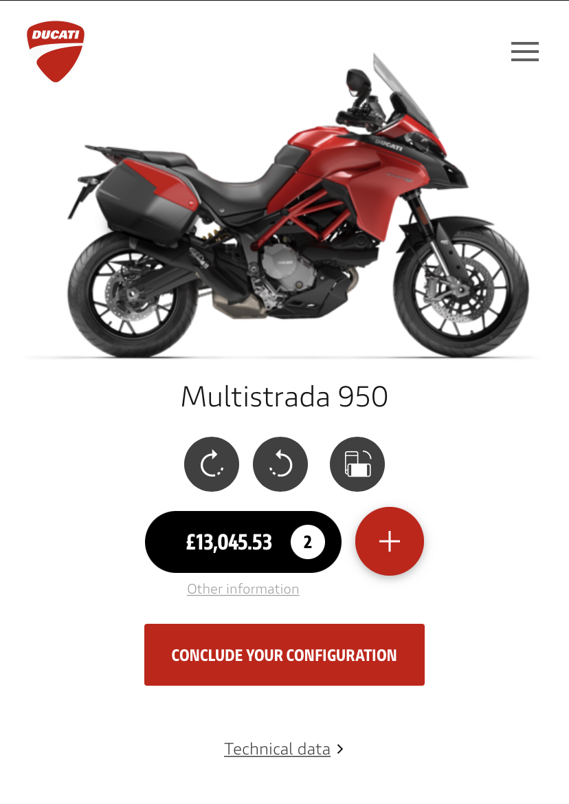 When mine arrives in April it will still feel like xmas ....... I actually believe for my kind of riding it will be perfect ( European touring ) with a more balanced ride not quite so edgy as my previous Multi V2 but more than enough for the road riding and with the comfort that we have all come to enjoy for long days in the saddle. I'm sure if you dig deep you'll find things that dont work for you but there are plenty of great bikes out there to choose from !!