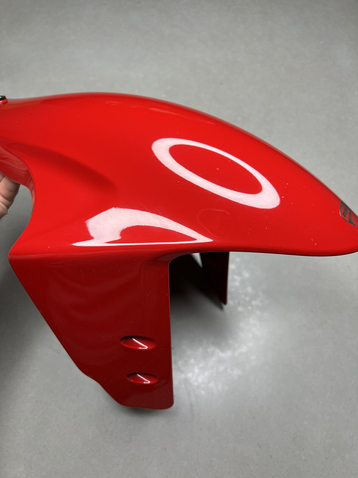 For sale is my spare Panigale front mudguard. Was used on my 1299 but will with 899/959/1199. I used this as a spare mudguard for trackdays, so it's taken a bit of a beating from stone chips from an airfield day, so I purchased a second for the road and swapped to use this for track. I did try to repaid the stone chips, but they were pretty deep. Makes for an ideal spare, genuine Ducati part. £50 post to UK.