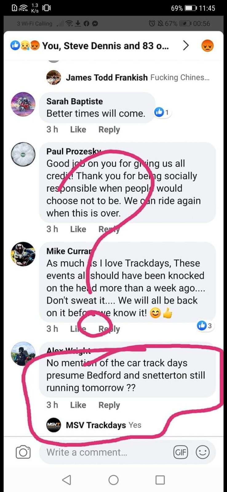Oh ffs, slow news day so here goes: 1.) People are complaining that track days are being cancelled 2.) People are complaining that booking systems are still operational and bookings continue to be taken. 3.)People are complaining that track day companies are not offering refunds, as opposed to credits. I am in none of those above three categories so have no complaints myself I am identifying the possibility of people contacting track owners directly in order to avoid the unnecessary and often more expensive process of booking via a track day company (the ‘monkeys’ to whom I am referring in my comment). Was I able to add any value?
