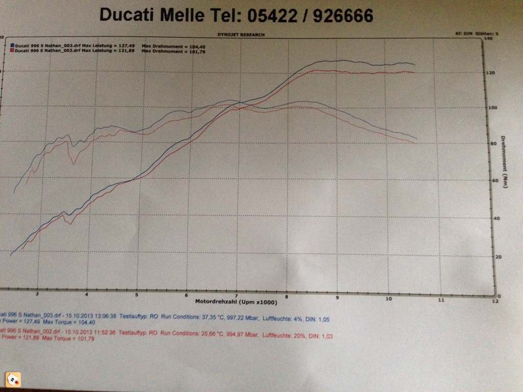 My 996 SPS hit about 150 after some engine work, but on advice from ducati Wolverhampton I reduced the compression as they suspected the squish had been reduced too much. Was still very torquey after though, have the graphs somewhere