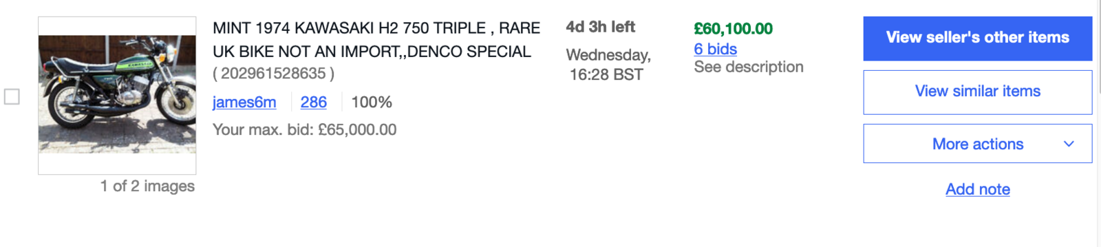7. I'm in a bidding war on the old Kawasaki. I've had to go to £60k to get the high bid in again. :mad: