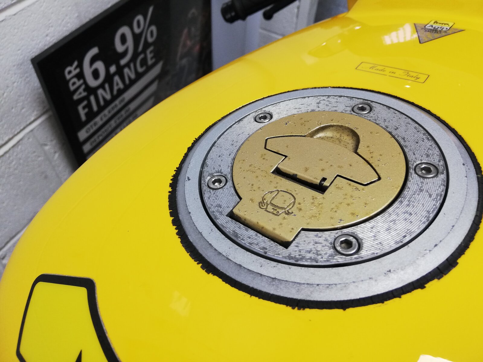 I went and looked at the yellow 900sl for sale at motorbikes4all today. I rang them on Monday to say I was coming first thing Saturday and I would ring again on Friday to check it was still available. I rang Friday and said I would be there first thing Saturday. I got a call late Friday afternoon saying the bike wouldn't start, fair enough thanks for letting me know. I half guessed it wouldn't as they like to be stated and run once a month and they've had it up for sale for a fair while. So left at 6:30 this morning 3 hrs and 198 miles to get there. It looked half decent from a distance and thought a bargain and deal could be in the offing, but closer inspection revealed that not to be. The fairing panels and tank are all good enough, some of the wheels are a bit scabby but it is 20 odd years old and I except that, but there was lots of corrosion on the frame and the headlight bracket was a right rotten mess. Rusty orange chain and discs too, the tyres had about 10psi in them too, I reckon it could have stood upright on its own.very pitted forks also Bit disappointed but you have to view these potential purchases in the flesh and I'm I did. So just over 400 odd miles and a few hours in the car talking to my dad was a pleasant enough day. There and back at an average speed of 61mph and 66mpg for less than £50 in a diesel Nissan note bargain motoring!. Unlike the bike I went to look at. Viewing the bike in that condition gave me no confidence in them getting the bike running either.