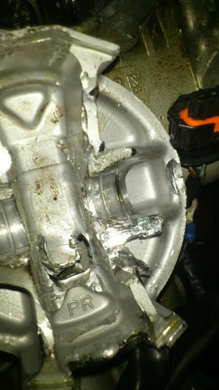 I think that was the the first failure, the gundgeon pin was on the edge of the housing and the stress was to great for the material and made that triangular form on the piston....