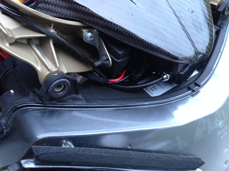 Well it's back! Had some time the afternoon and managed to fit the HIDs and a few bits of carbon and the nose. The lights are soooo much better! I managed to hide the ballasts away and so there is not really anything on view.