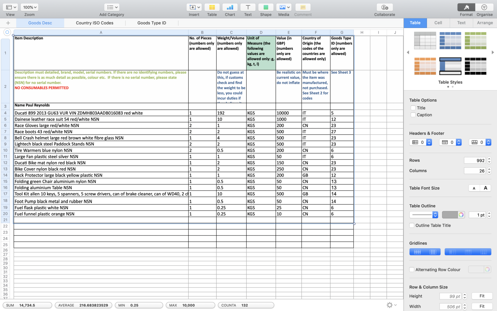 Any Idea on the ceiling of value before charges are incurred? The bike is worth, say £12k? The rest is just standard, as per Paul’s Carnet spreadsheet