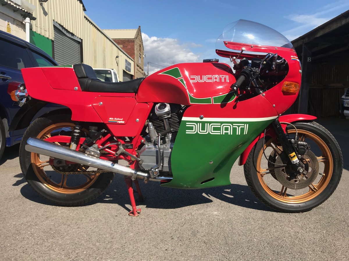 That will go for mega bucks. Early 2000s. The motor is a 900 SSie lump. I seem to remember that there was a copyright issue relating to MH (Mike Hailwood) at the time.
