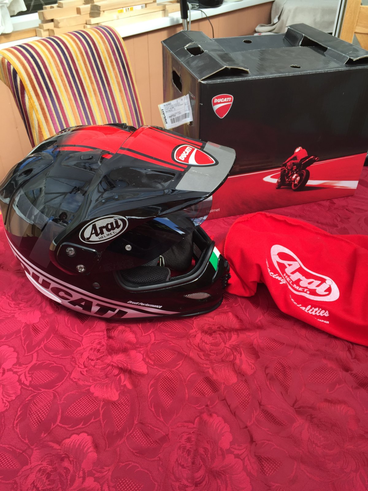 10. Selling my Arai Ducati Tour X4 helmet size 60/61 XL. Comes complete with original box, red bag, clear and dark visors with pinlock on the dark visor. Less than 1 year old and in excellent condition an been sanitized. Never been dropped.