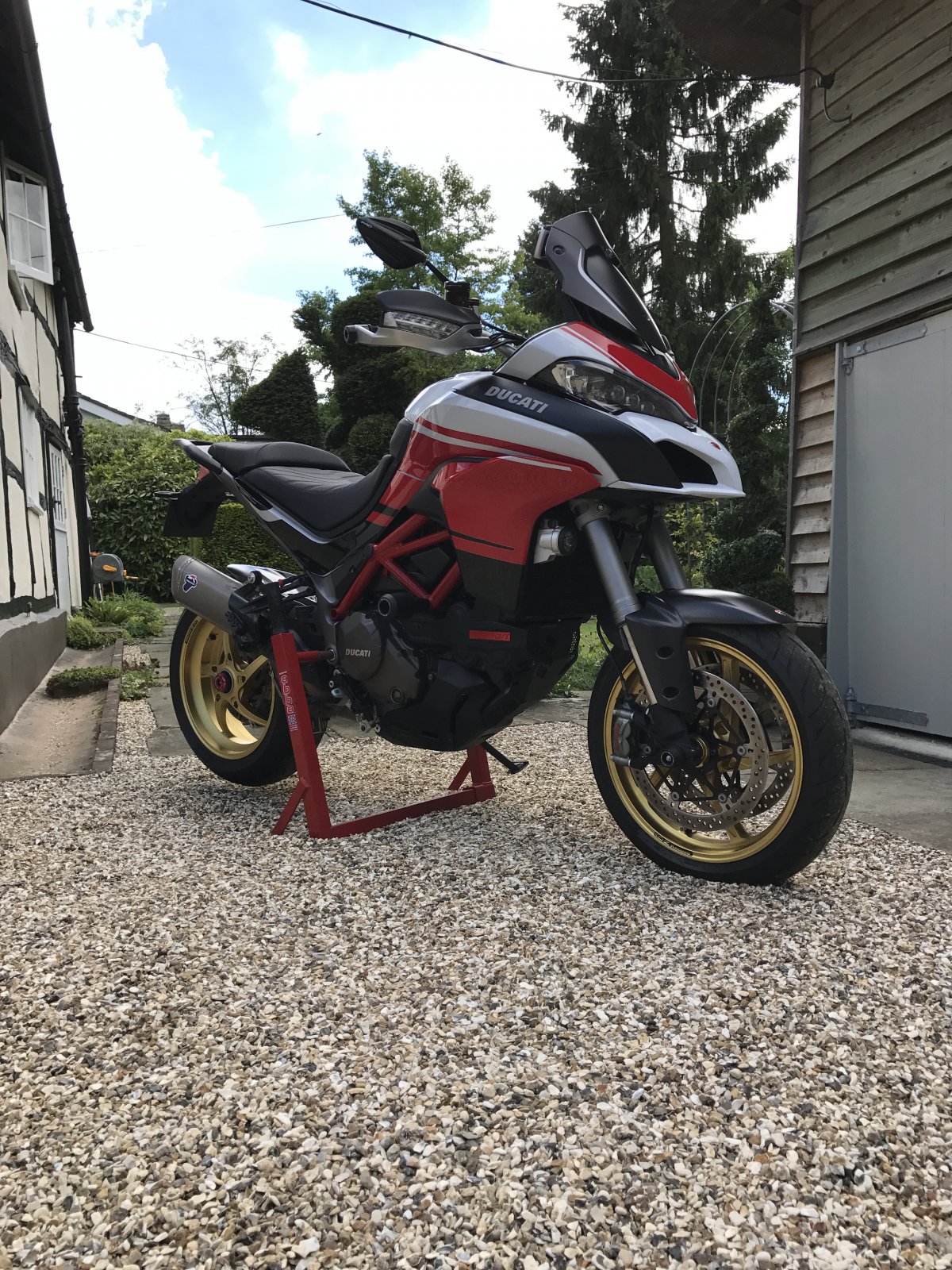 Sellling my mts 1200 s touring after 7 years...offers please : Had it from new 2010 ducati multistrada s touring white - 30,000 miles full ducati service history and just had its second desmo big service - yesterday. Over the years, had all services and all warranty and engine work done to it by Ducati, including bottom end and recent top end, including the recent work all by ducati garage moto rapido or snells. I have come to expect these problems and make sure it is serviced regularly if you are going to be riding it daily, it has never broken down just needed major work every 2-3 years...so beware its a ducati not a jap bike. Full sports exhaust and ecu racing chip, all the panniers for touring, performance seats, remote key and filler cap, new tyres and brakes, etc, etc...all the extras including rizoma parts and ducati carbon add ons, ohlins electronic sus ( needs the ohlins scu chip - only upgrade not done), I have got all the original exhaust and parts where upgraded, current exhaust loud. bugs