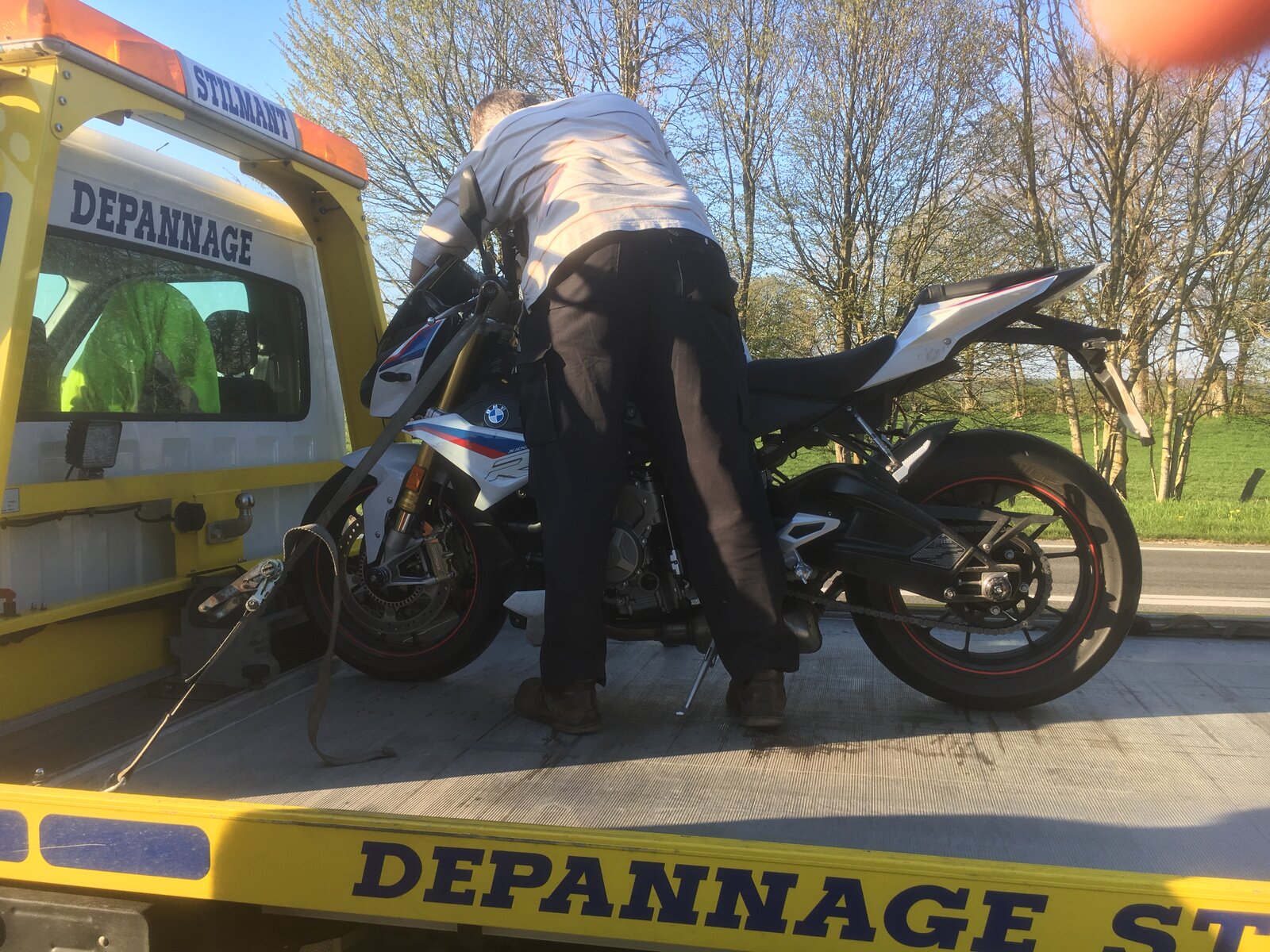 Thanks for the info - my ZX6R was strapped down on its sidestand via the pillion peg hangers and over the bars with ordinary straps - didn't approve but had no choice apart left it at the road side overnight....not. Anyhow, just bought SEALEY made handle bar and a rear wheel straps from Zoro which look pretty substantial - good price and service. https://www.zoro.co.uk/ Tie Down - Motorcycle Rear Wheel - Order Code (SKU): ZT1231655P - £17.19 Tie Down - Motorcycle Handle Bar - Order Code (SKU): ZT1231654P - £12.29 Next time either bike should it break down it WILL be strapped vertical! But hopefully it won't happen again? Thanks for everyone's input. RR