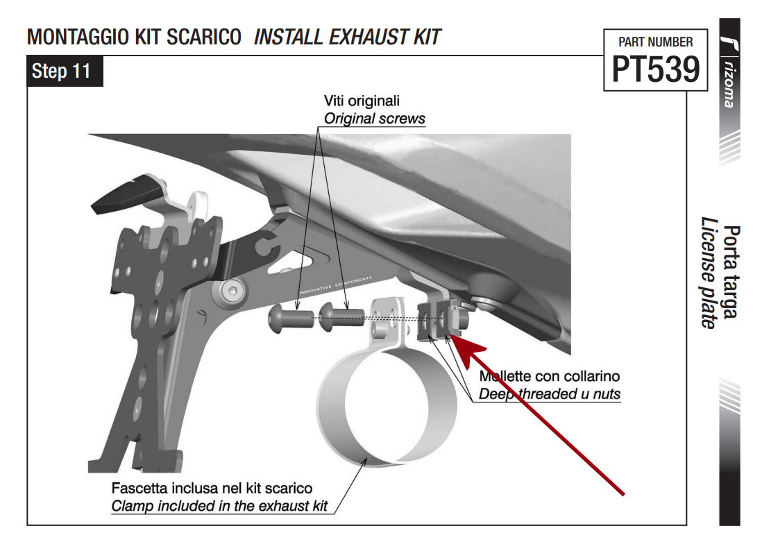 6. Done a bit of digging. The only thing that allows fitment of the Rizoma Fox with the D200 is the addition of this little bracket onto the "foot of the tail tidy" as shown by the red arrow.