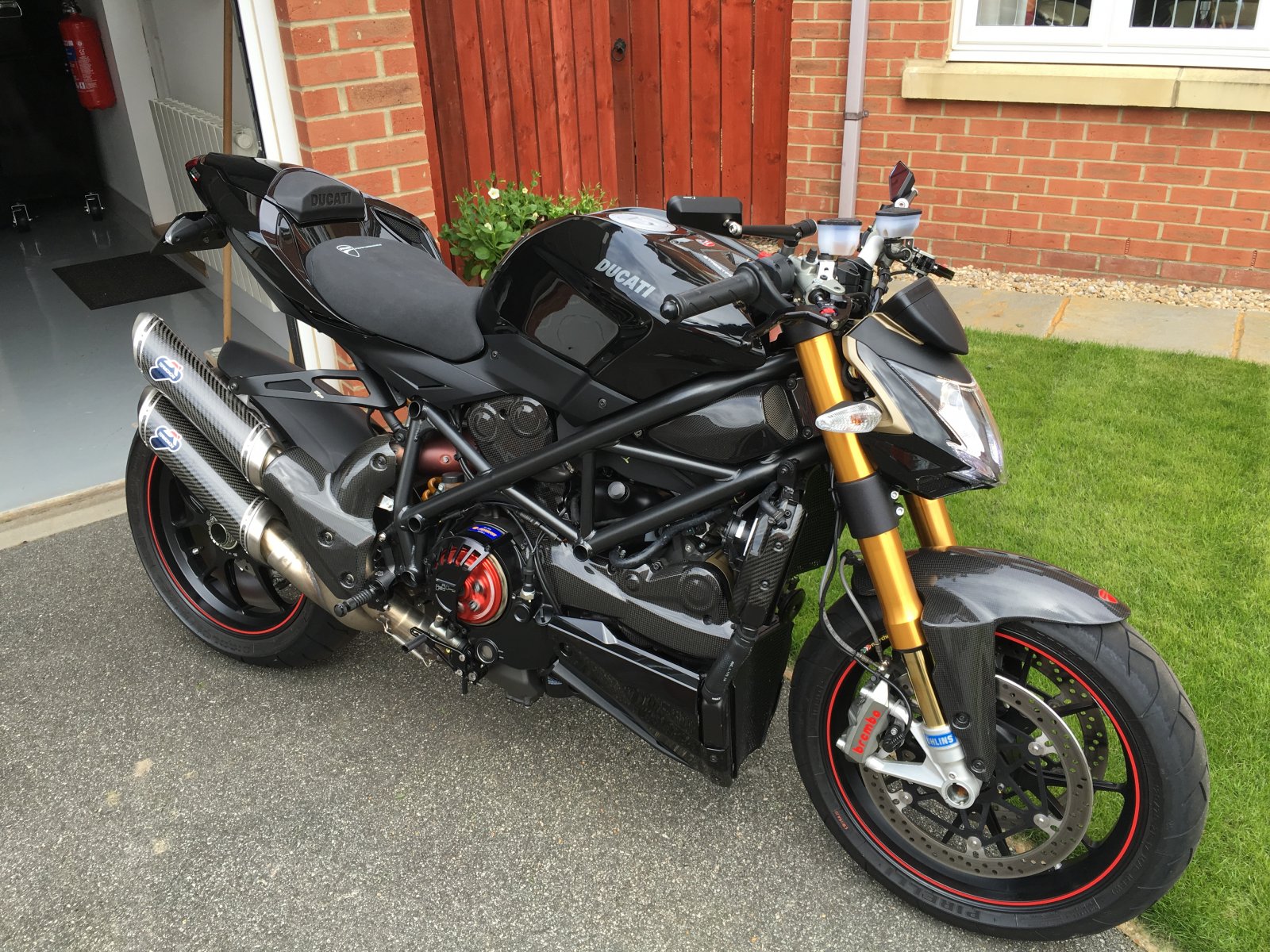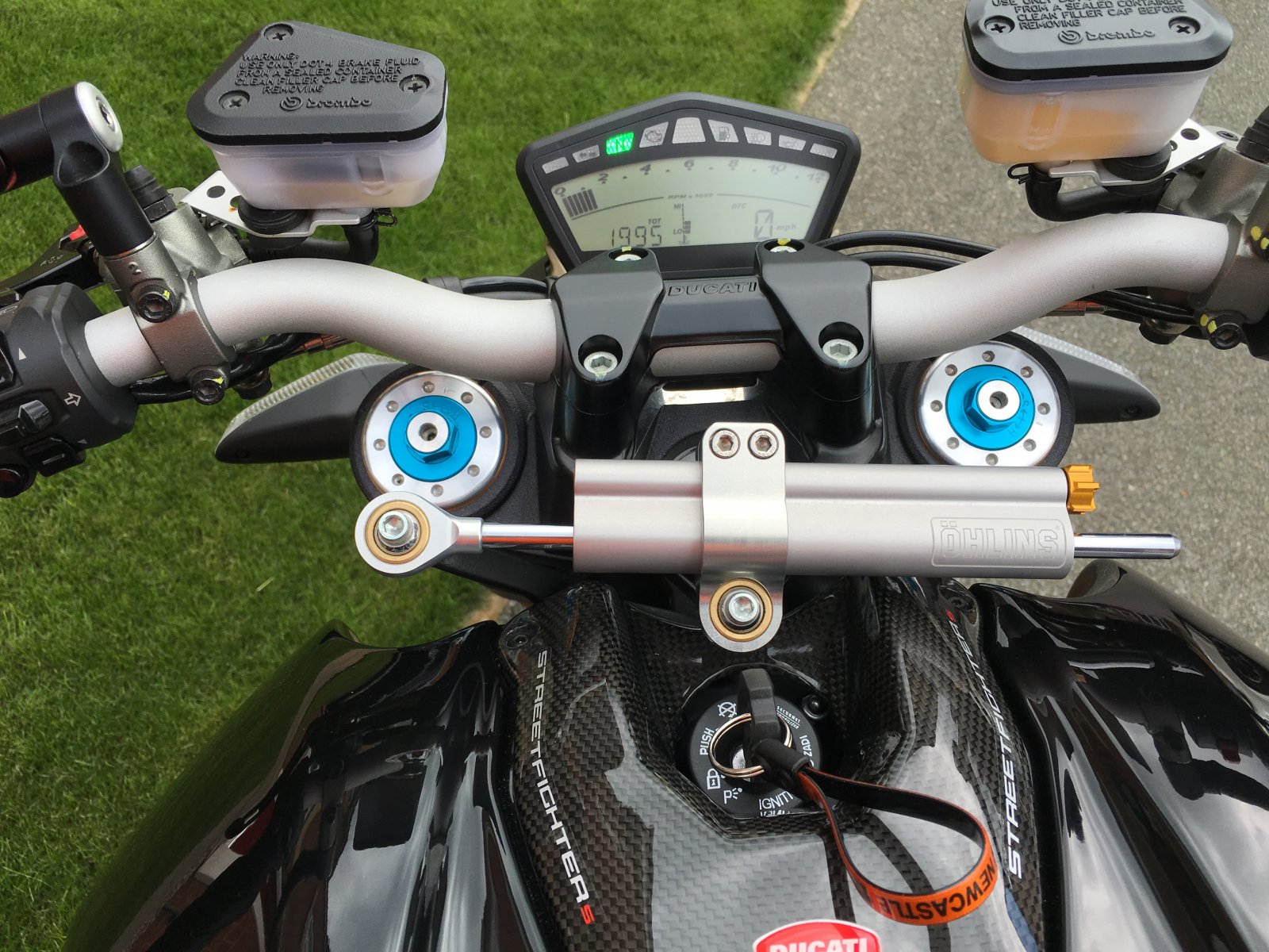 Jack, I got a couple of bikes out to start up this afternoon. I haven't started them since they were serviced in November due to using another bike this year. Anyway, you can see some of mods I've done to mine. The air ducts give it the 'Fat Fighter' look. The mirrors clean up the front end. Ohlins damper adds some bling factor.