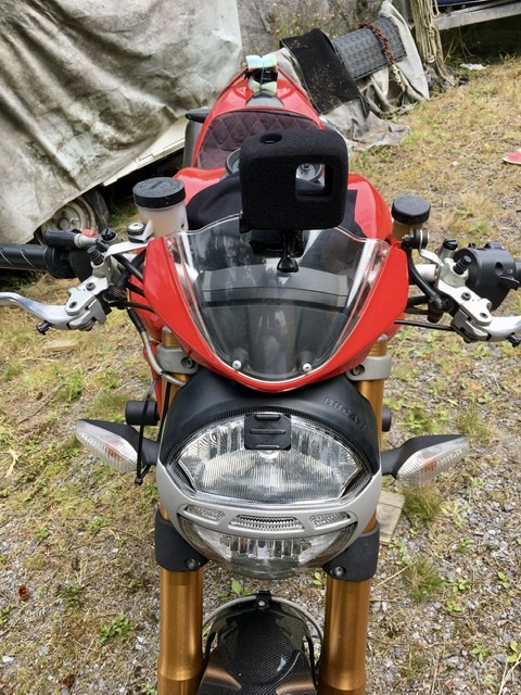 Today I’m experimenting with using a separate sound recorder to capture the sound. I’ve also mounted the camera a little higher than I had been having it, although it wobbles a fair bit on the bikini fairing. Tomorrow I’ll be removing the GoPro audio files and then trying to sync the separately recorded one - should be interesting