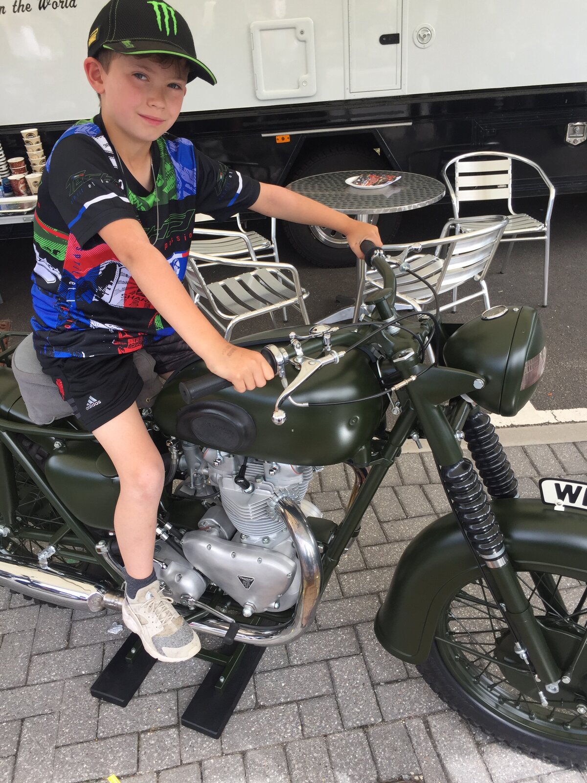You should get a side by side photo of your lad on the bike and McQueen sat on it in the movie. He will grow up to appreciate the significance of it in later life, even if he understandably doesn't know who the actor was.