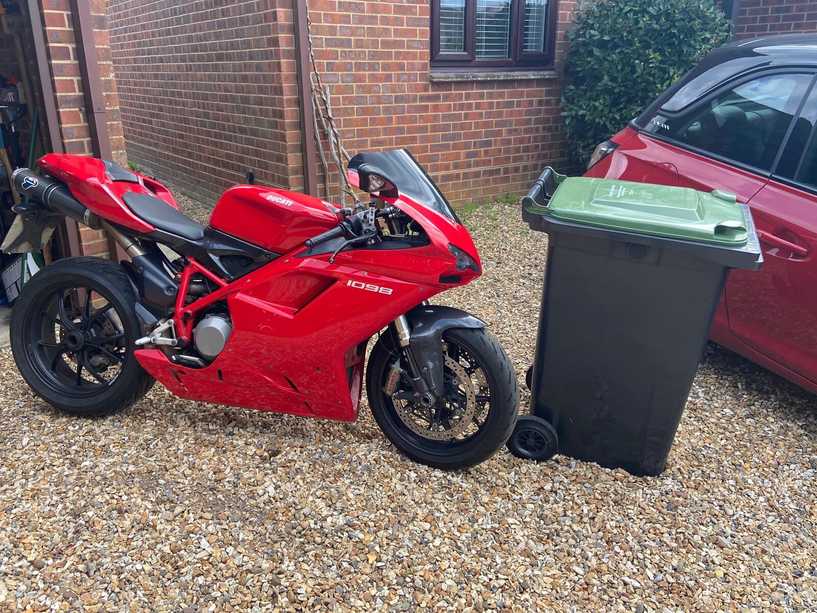 I bought a 900ss in 2010 This one Then sold it and bought a 1098 in 2012 This one, with Wheelybin to cheer up Viv so just over 12 years now. No plans to change either.