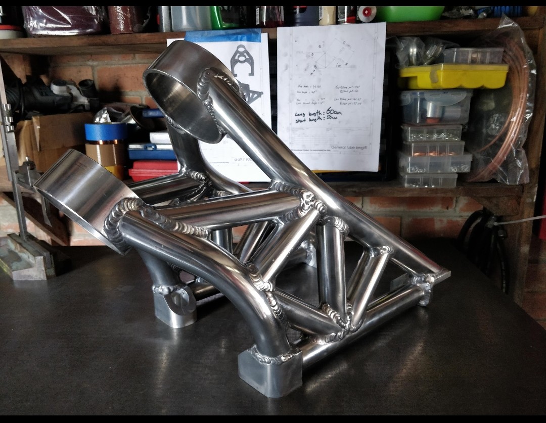 Update time.. I've got all the machined parts finished: It blows my mind to think they were made on a lathe, the lathe milling does work on alloy but I wouldn't recommend it. I'm definitely not going to try it on the steel or titanium versions of the chassis. I used a 10mm endmill, I planned to use a roundnose to radius the inside corners but it's so over engineered in these parts that it didn't need it. ..I also lost the end mill. It's nice to be able to get really good precision on these parts, few surfaces are actually that important in terms of dimension accuracy, but I get a little obsessed and want everything to be spot and have a great surface finish... That will be lost under powder coating later. Sad! I can't tell you how much I love that four jaw, the stuff it can do is incredible, buying the lathe is certainly one of my better decisions! All ready for some tubing and a really good welding session, should be finished by the end of the week! I had a go at bending some tubing this evening, I must of been delusional thinking it would be easy to bend 35mm 4mm thick aluminium, you just need 'some' leverage. I'm beating myself up a little on how long everything is taking, but I just don't have the right kit. My little Clarke bandsaw has seen no end of problems, I went to cut a section of steel today and one of the wheels seized solid on the shaft. It takes forever to cut anything too. But the more I think about it, the more I think if I had all the right tools, a team of people to help, more space and more money... I'd be a manufacturer not a guy in a shed! The end is in sight, the project in terms of university will be done in two weeks, which means I won't have time to do the steel or titanium version in time for my dissertation project. I'm not too dissapointment primarily because I'm not in hospital dying and I'm bloody lucky covid hasn't effected me or my family, and secondly I couldn't get to uni to use the surface plate and test the stiffnesses and validate my design anyway. ..don't panic! I'm still making the steel and titanium ones, the tubing is in my garage, I'll just have to wait for uni to open during the summer so I can use their mill and do it properly. Hopefully in time for my master degree project. I also managed to find some en14a steel for the mounting points and headstock for the steel version, so it's ready to be made. It's chrome coated which is probably going to be a total bastard to machine but we'll see. I'm looking forward to the steel version, that'll be the best one I reckon.. I'll have to paint that one red.