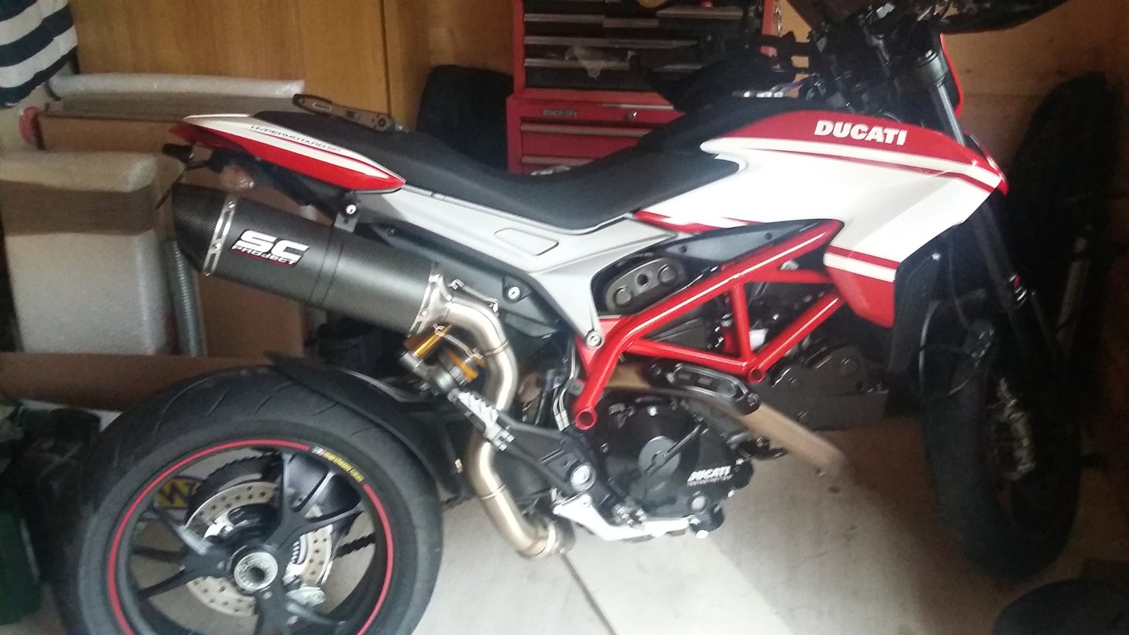 Not sure if I have done this right re photos... 821 SP 2015 7400 miles. Mint condition. I have been offered 8500 by Destination Triumph against a Thruxton R for the Hyper in stock trim. I would like 8700 for it to include Anodised levers Rad and cylinder head guards Arrow low pipe with carbon end SC carbon high level pipe Carbon exhaust guard Carbon rear sprocket carrier cover Anodised frame plugs Plug in fuel manipulator to smooth throttle delivery Puig sport screen Anodised rear wheel nuts Water pump protector Think that's it ! All service history, documents, handbooks and keys etc. Give me a bell on 07932 891858 if you are interested. In Brighton area. NIGE.
