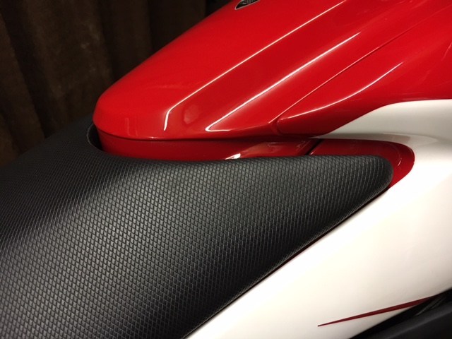 Thank you, I heard all the stories this morning from the dealer, The termi pipes etc need to carbon up a bit to get the gasses flowing better, Reset the key maps, can take a few times before it runs well This is a sports bike, can not ride at a constant speed, makes it worse with termi's, really? but when the sales pitch is it's awesome will be great you'll love it!!!! no mention of the so called common problems Has flyby wire throttle more sensitive than cable When I asked about the 939 demo bike how that rode really nice they were surprised. What a croc of Sh*t. Also the Termi's you fitted can you post a picture of your brackets supplied with the kit, the carbon shield, the pipe heat deflector (mine fouls against the frame the frame and is marked now) and then your seat gap to the tank. This is mine, the seat gap I noticed straight away when I collected the bike as I did not notice this much gap previously, and the pictures I have although not specifically of the seat would suggest the same