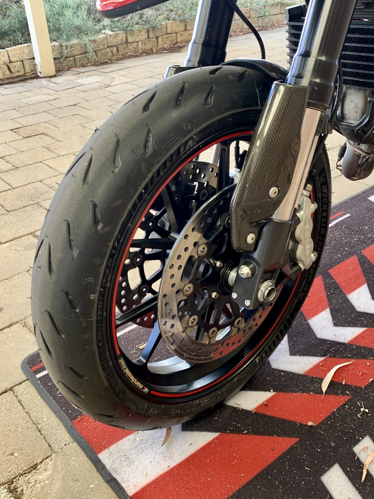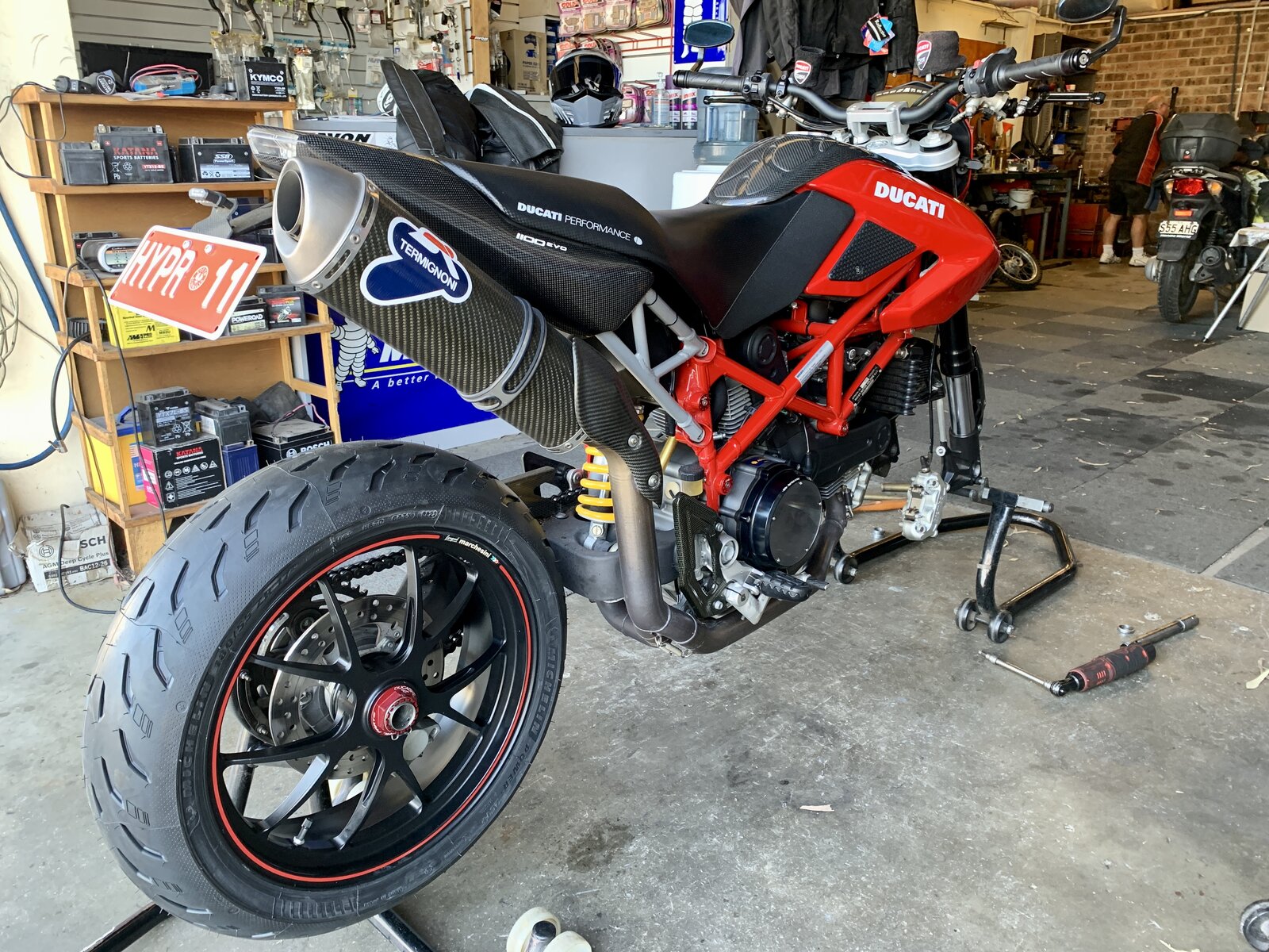 Finally having some decent weather this weekend here in Adelaide so re-registered the HM and went for my first ride in 3+ weeks. Mate tagged along with his V4S SF for a coffee run out to the Adelaide Hills. Note:- still not fitted the new 'wavy' rotors!