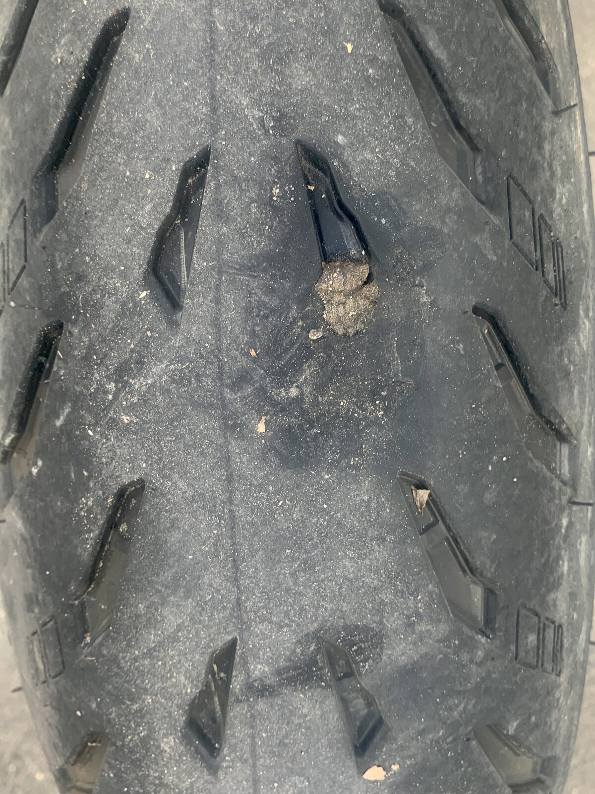 Well that shagged the morning's ride! Perfect weather here but only got to do 70km before this occurred. Pretty much new Michelin Power 5, done approx 300km, no indication of what caused the puncture!? Hole is along the mould line in the tread recess; tried plugging it but no go - luckily my riding pal has a van equipped to carry bikes so he went to get that and got my bike home.