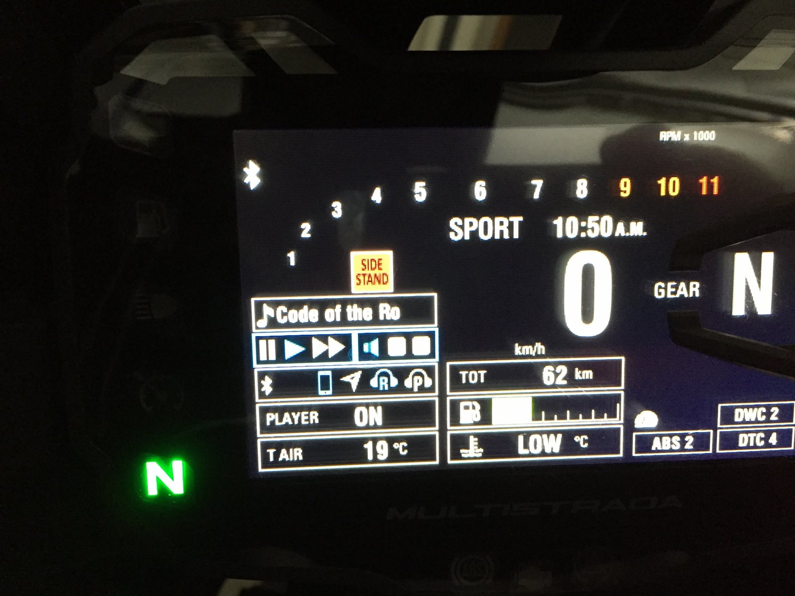 Ducati multistrada link app is available, but it only shows ducati commercials at the moment. You cant change settings of the motorbike thru your phone, yet.. There is aloth of info on the display, but you can select what you want to have on it, in that picture is every info displayed. Like i said before, it really needs quite aloth of time to get to know how to change settings on display, there are so so much what you can do, and slowly it is starting to feel quite easy to navigate.