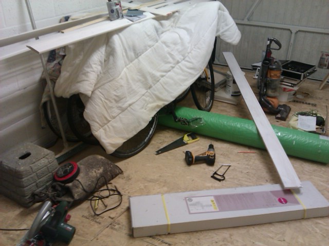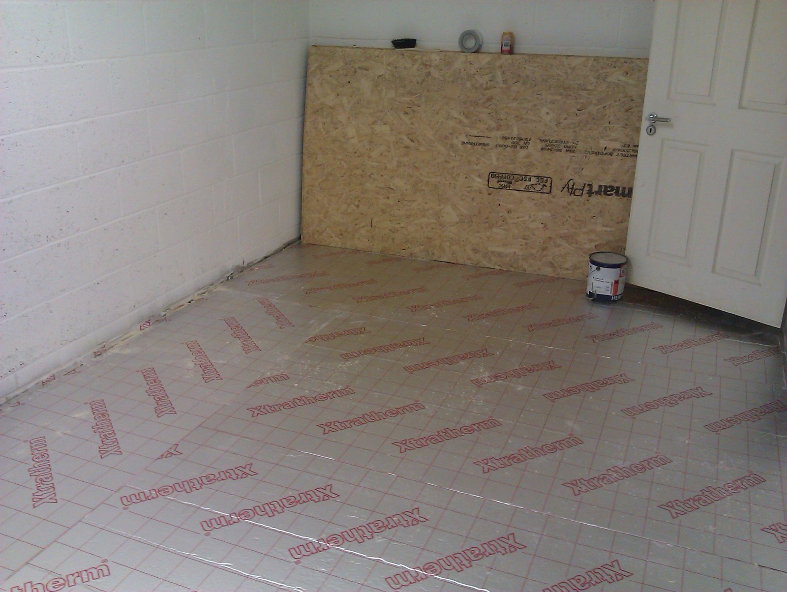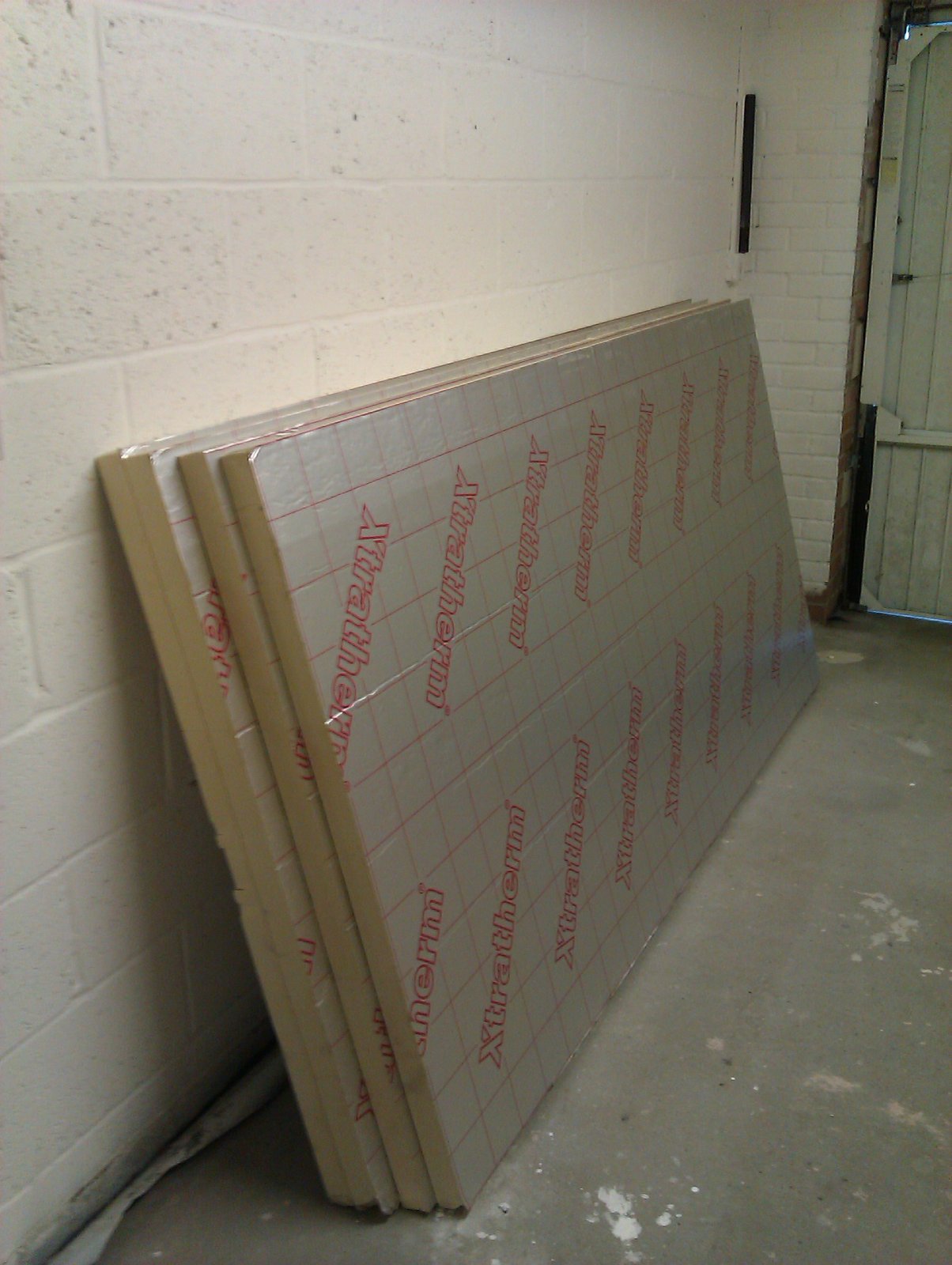 Insulating & flooring my garage as we speak. 50mm foil backed big sheets then 9mm OSB board (all 8*4ft) on top then a roll of grey oil resistant check plate pattern viynl (big green tube in pic) to go on over all that. Sweet