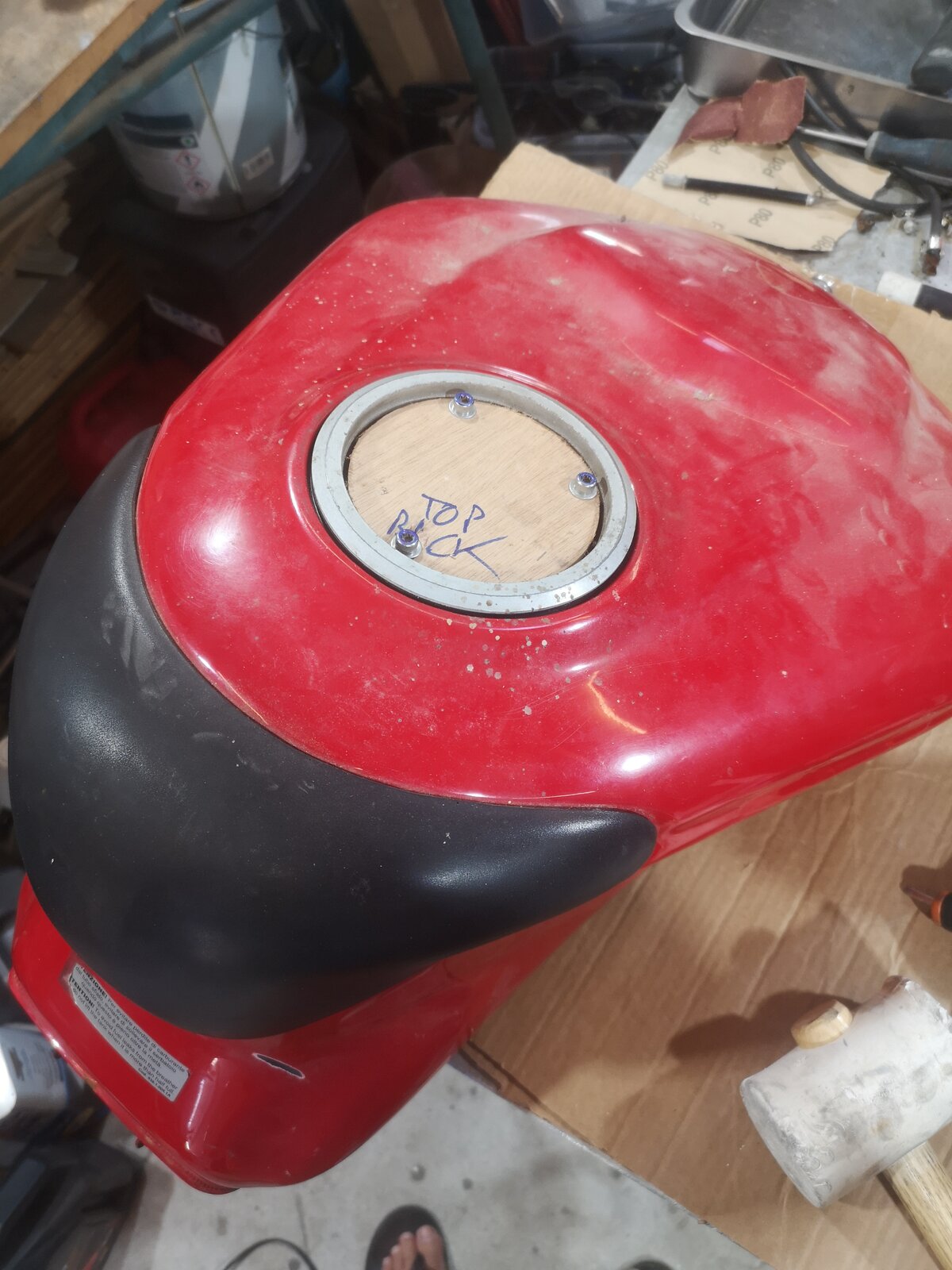 So the idea of letting the engine wait for pieces, and to start on the rest of the bike changed the dynamics of the build.. it meant I could attack multiple parts at the same time... a really good idea, except for the chaos in the workshop. If I do it again I would try to organise some storage racks for the walls as all the dismantled pieces end up in piles on the floor. But, advancement seemed to speed up slightly! I looked at using a hot air gun on the black plastics, the idea is that it brings the oils out of the plastic to the surface...restoring the glossy finish. I've already tried the back to black products on car bumpers, but the effect is always temporary. It kinda worked, but the age of the pieces was still showing through. So found a much better solution: This stuff was perfect...really made the pieces look like new.