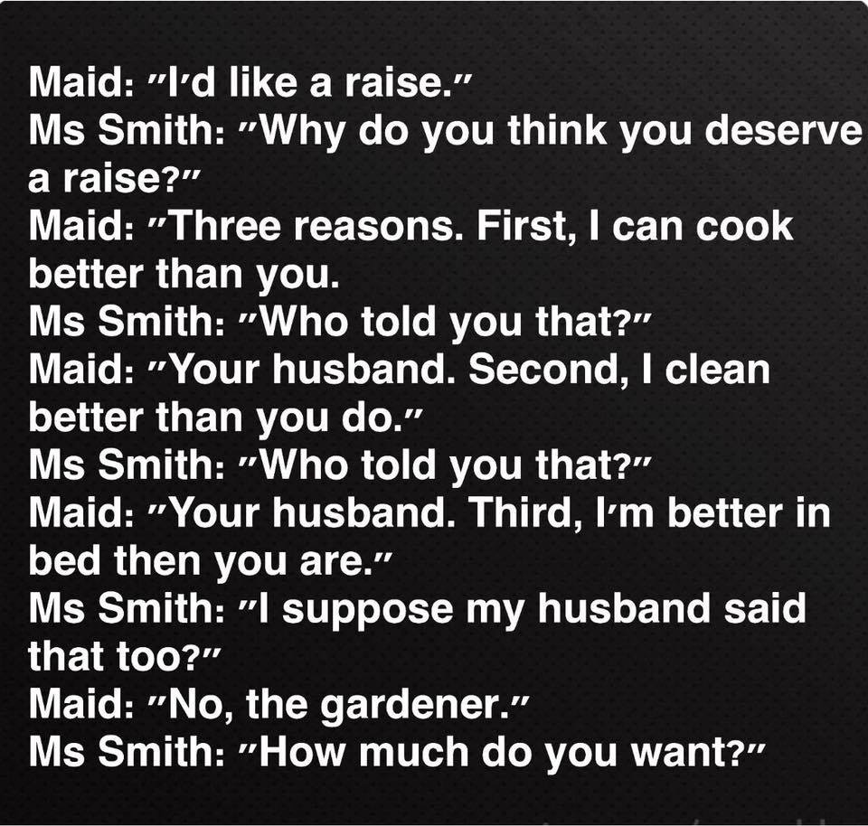 I was passing by my local pub on the way home from work last night when I saw my mate Dave gulping down one shot of whisky after another. Fearing the worst, I went into the bar and confronted him. "Dave, what’s going on?" I asked. "It’s my wife Julie," Dave replied. "She's run off with my best friend!" "Hang on, wait a second!" says I "I thought I was your best friend?" "Not any more you're not" said Dave with a huge smile on his face "He is!"