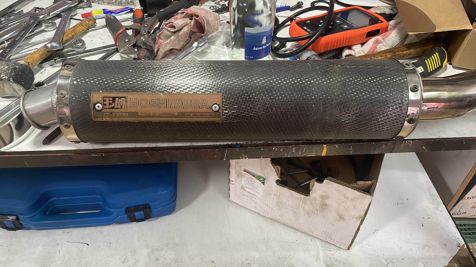 Long time I doesn’t write regarding the Gixxer, the bike is now more or less ready, I found locally a old muffler who I’m adapting
