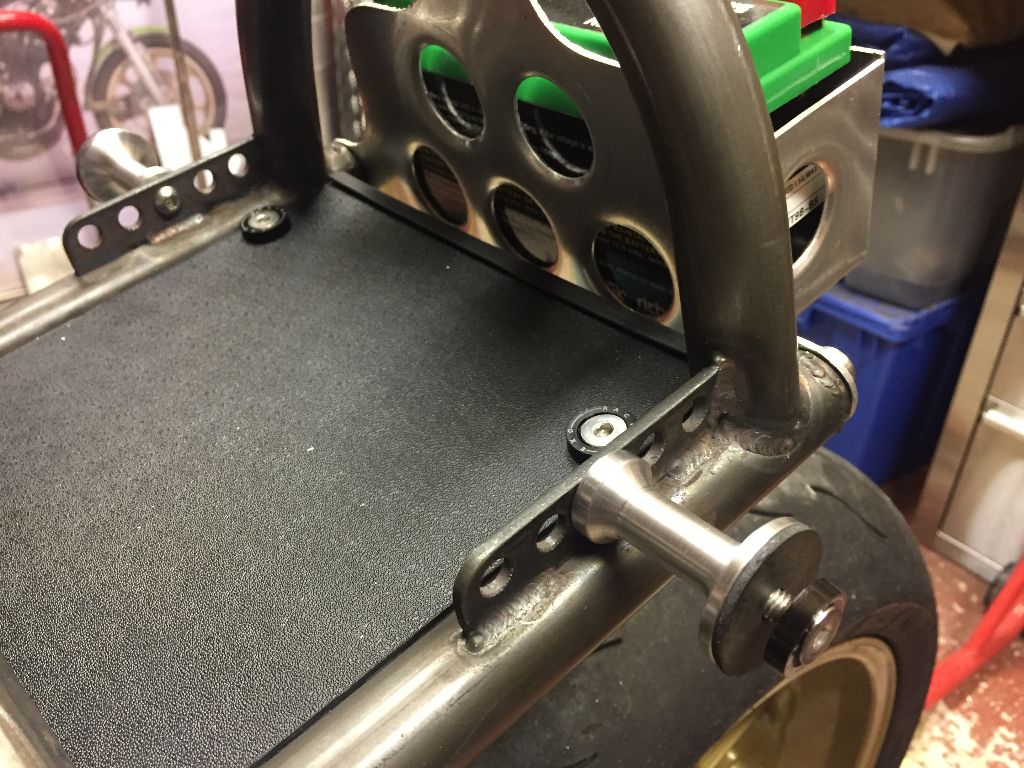 More small steps (but it is all in the detail so they say...……) Received my posh fixings for the rear Leccy Platform - and finished the upper rear fairing mounts ready for welding. They bolt onto the outer Cam Cover bolts and replicate the originals nicely.