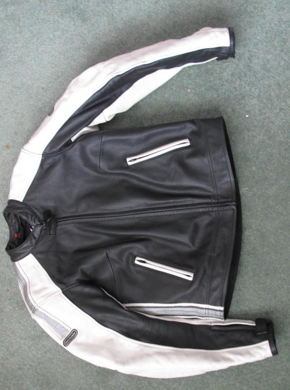 Ladies Hein Gericke black and white leathers with silver stripe. Jacket size 42 (14/16) Trousers size 40 (12/14) Excellent condition £120 plus P and P