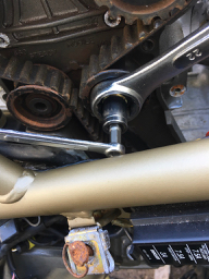 New belts arrived from @Exige yesterday so I had to go and fit them. I've never, ever, ever, done that before in my life. Previously it was always a time poor/cash rich situation now I've plenty of time so why not give it a go. Thanks to a couple of YT vids it's actually not that difficult, just fiddly. Especially getting at the tensioning pulley locking nut on the vertical cylinder. Bloody frame's in the way and couldn't get my socket sets in there.