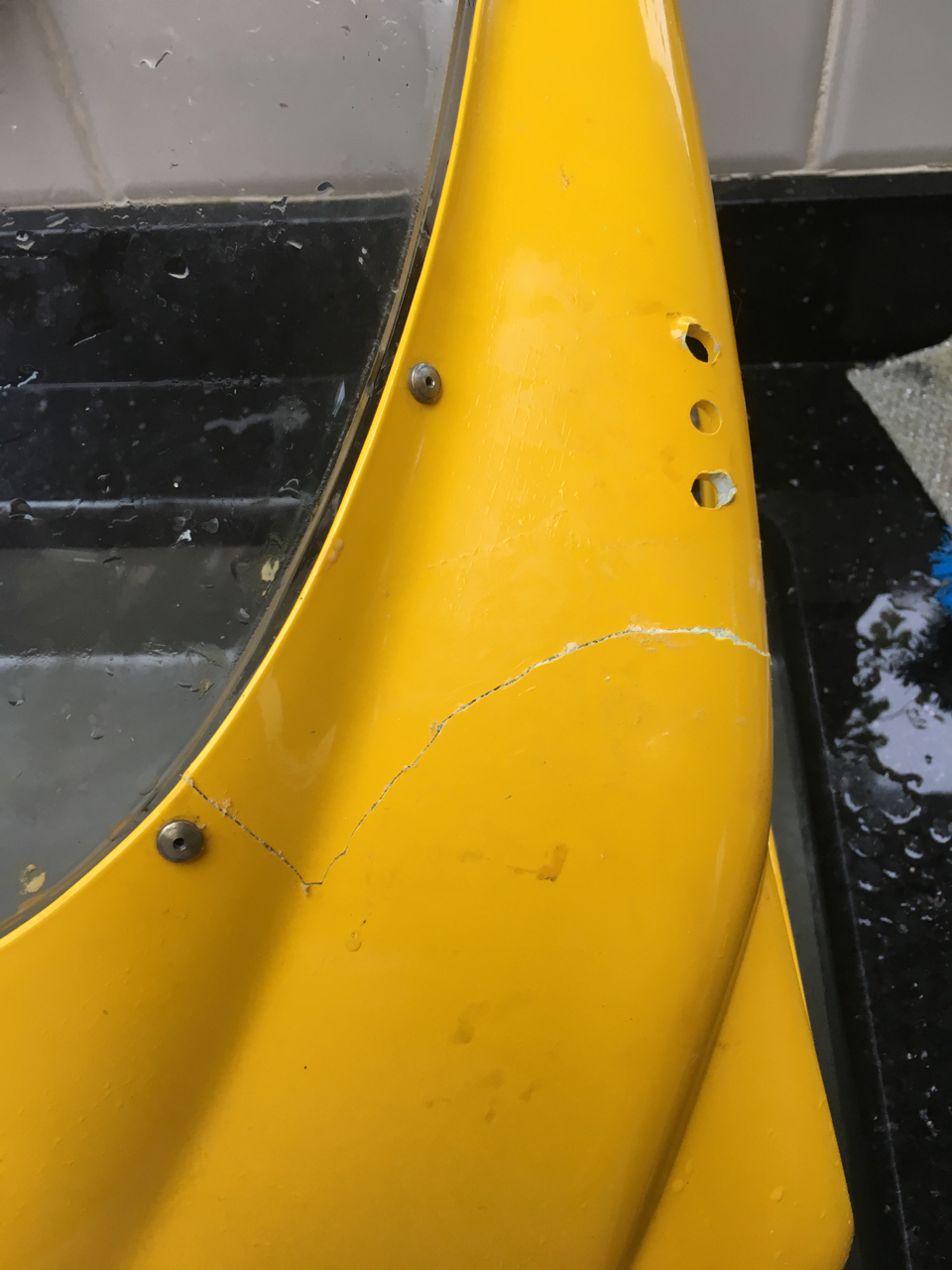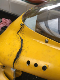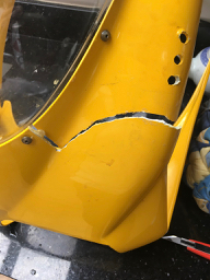 Does anyone have any suggestions please for filler and where I can get Ducati yellow paint from? I might as well try and smooth out the glued crack and then respray. I've a paint spray gun and fancy giving it a go.