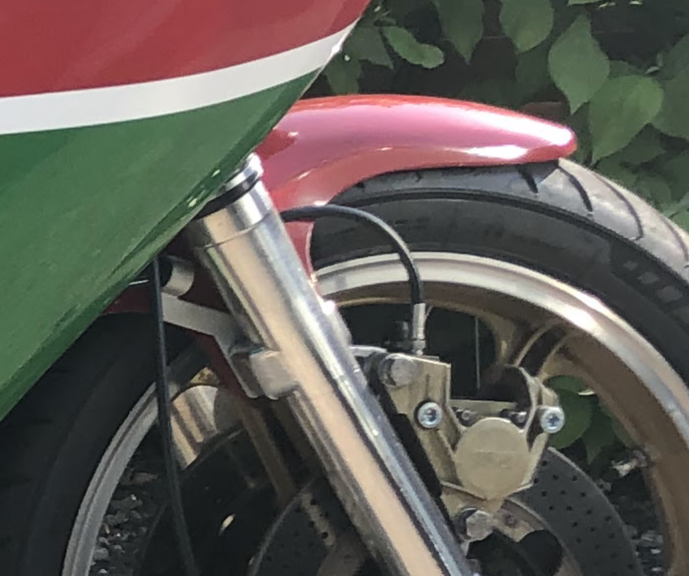 Hopefully the new black, Hel brake lines can be attached without that galvanised bracket on the fork leg and the metal tube extension to the calliper.
