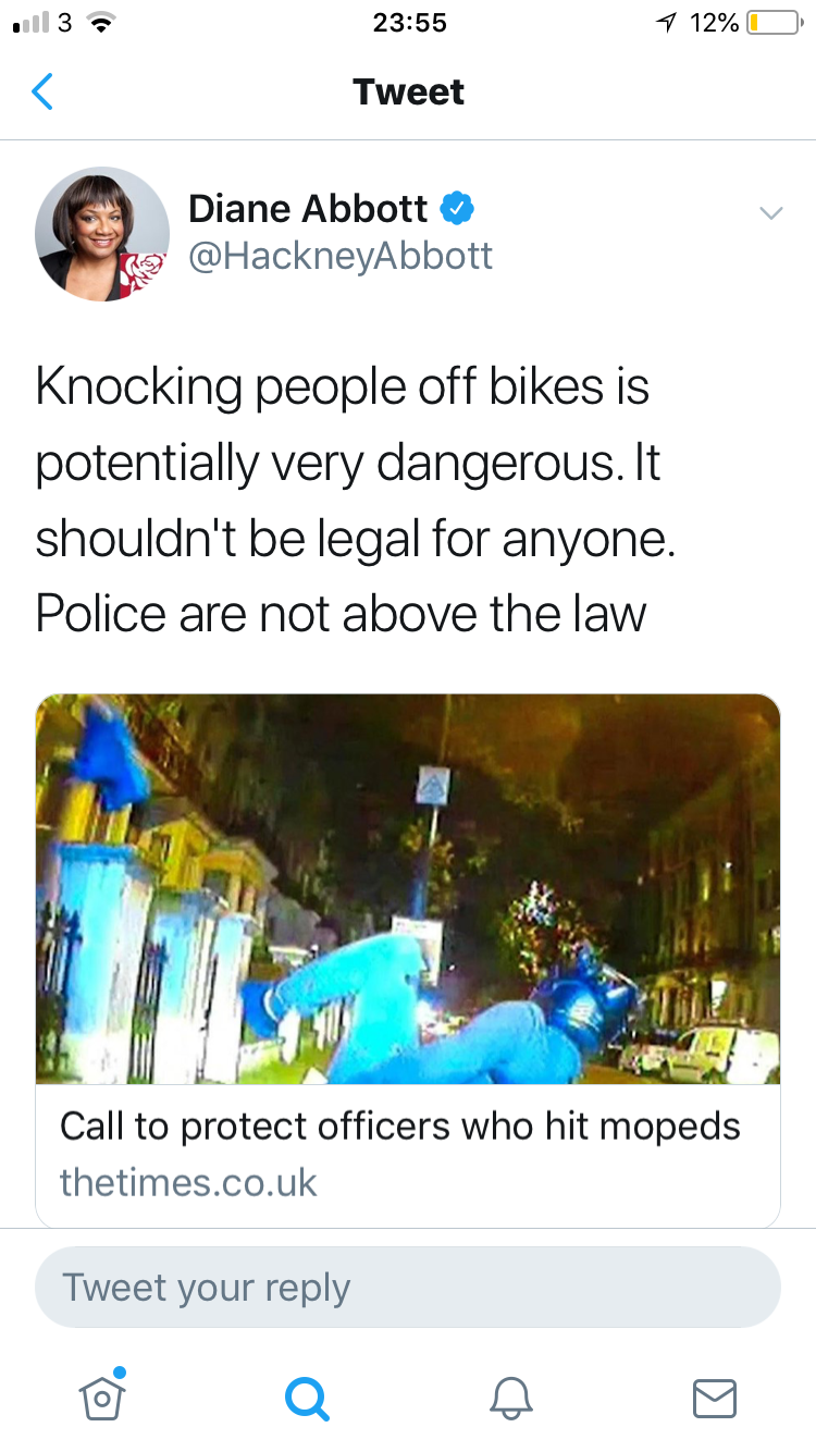 I support the police and there new tactics, but they know it is close to illegal in terms of civil law where the burden of proof is lower. Knocking a kid off a bike and he brakes 4 ribs and a leg could be argued in a civil court as dis proportionate to recover a 50 quid phone. What parliament needs to do is change the law