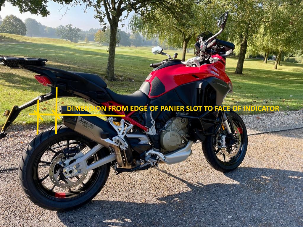 If you don't mind, whats the dimension from the edge of the rear pannier slot to the face of the rear indicator please? Looks to me that the tail tide doesn't move the indicator inwards.