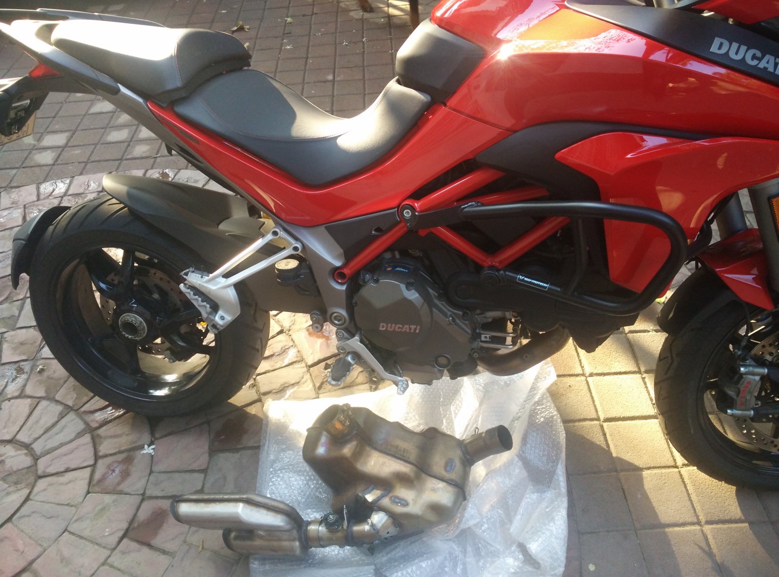 Hi! It's been a fun week, the welding holding the pipe that connects the cat box and the exhaust came undone (bike is 45 days and 3500km old) so reported it Ducati, warranty has since been approved. While new parts are the on the way, they also allowed me to drop the cat and get it welded so I can continue riding I installed the welded cat and exhaust today let's see how it holds up there was no impact or anything, just hard riding on shoddy roads and lots of speed bumps