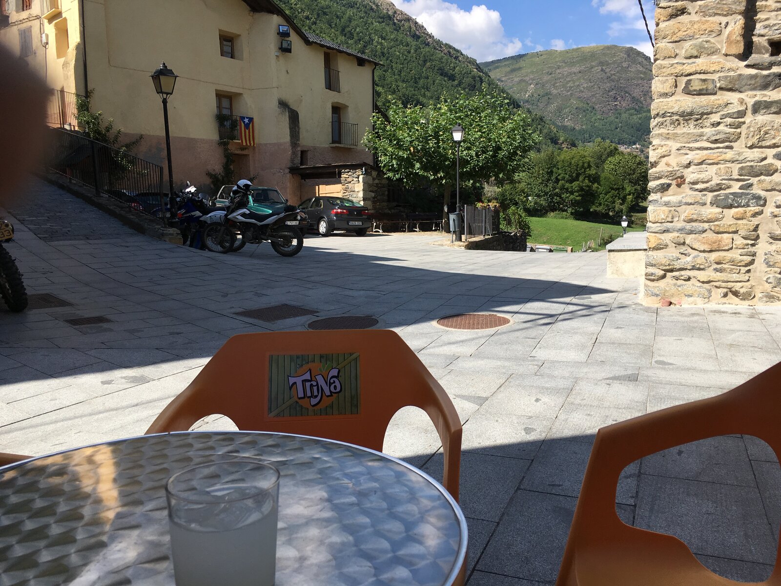 There’s one in this photo too, this is a little bar we came across in a little village in the Pyrenees, between trails, thats my Beta Alp 4.0.