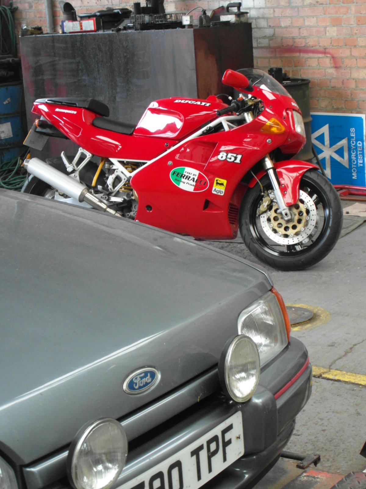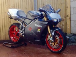 My red 916 was bog standard until, shortly after having been run in, it went for a service. When he was testing it afterwards for a shake-down run, my garagiste crashed it.