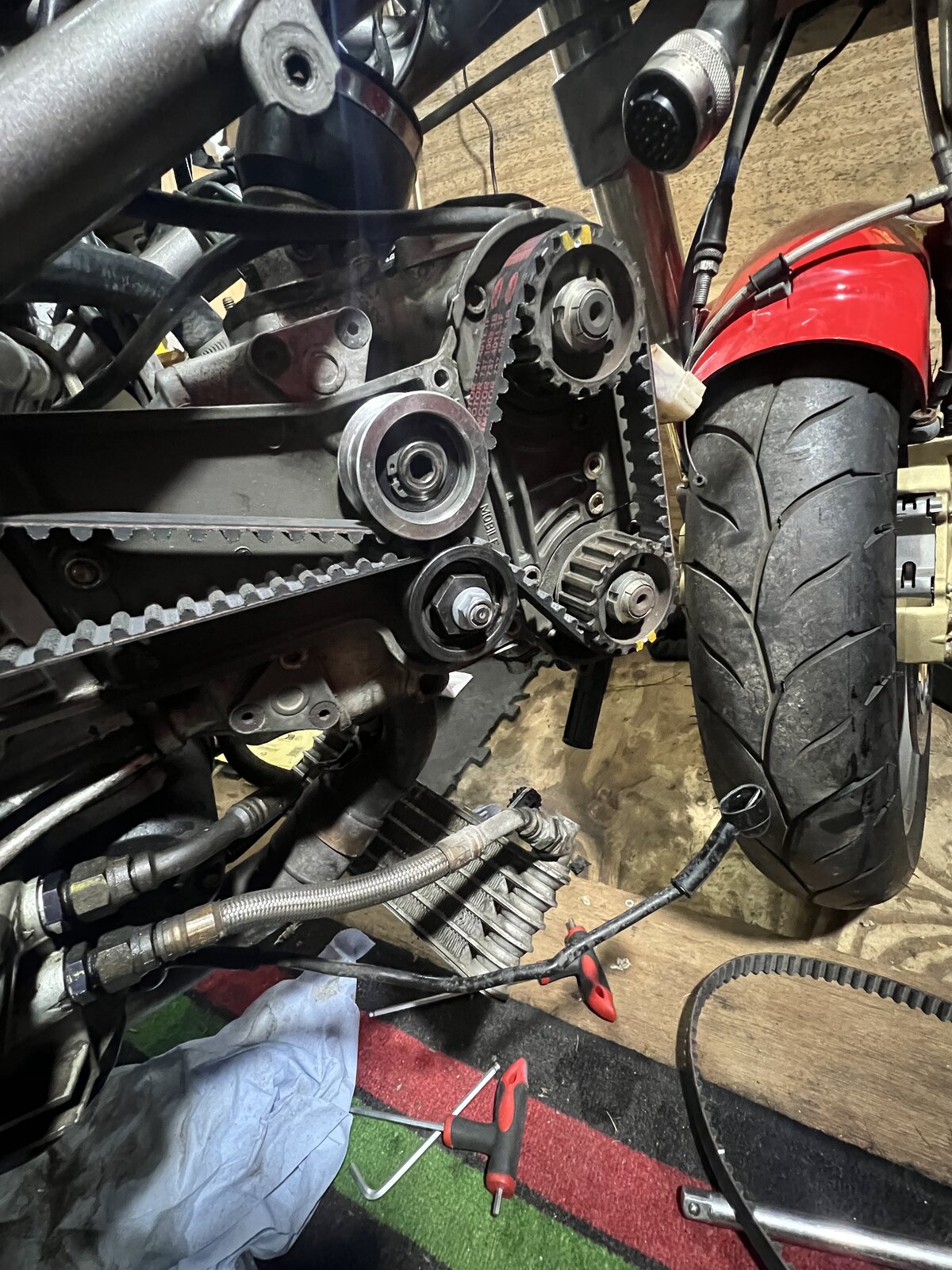 bit more done today Changed bearings on timing belt idlers and adjusters, think they'd seen better days. New belts fitted and tensioned with the Gates app.
