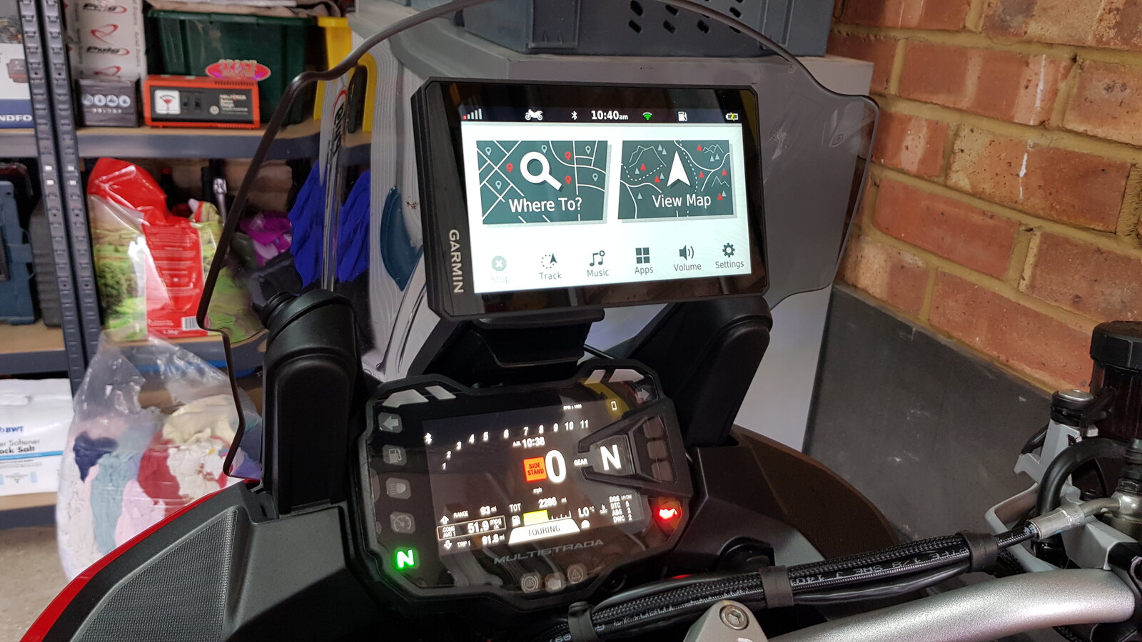 Mine arrived yesterday, pleased so far though there are a few things that I'm finding a bit puzzling, maybe others who have a Zumo XT know a work around. Pluses: Great bright screen, easier to read than my 590, with my slightly buggered eyesight it's a distinct improvement Touch screen is very responsive and nice big buttons, not needing the positive jab that the 590 does Revised UI that seems pretty logical, plenty of similarities to my old Garmin WiFi, now only need to plug into the PC to get Garmin Express to download mapping to local for Basecamp Route calculation and map drawing is an improvement Built in weather, rain radar, traffic etc is also handy and a slightly better implementation than on my 590. Traffic is included where I needed a sub for it on my 590, not sure how good it is and if it covers just the UK or is Europe-wide? Garmin Drive app, seems to work OK and can be used to load routes from my phone, fairly basic functionality, just the ability to connect your phone and Garmin XT for data (weather/traffic etc), calls and route loading. Not sure about Garmin Explore app, that seems more for off-road route planning Questionable: Moving routes from PC to XT requires, as far as I can tell, an ANT adapter. I have a workaround to this though it does involve a step via my phone. Every time you power on the XT you need to agree to Garmin's ELA and then also the usual ass covering warning about you potentially dying if you attempt to use this device whilst riding It's lighter/not as solid as the 590, probably an advantage on my Ducati mount above the clocks. The screen isn't recessed and it doesn't look as user serviceable as the previous models for things like screen replacement Quite why they've used a mini USB connector, I would expect micro USB if not USB-c in 2020 Thankfully there is a means to intelligently add routing nodes to a loaded route using a representation on the map, you can also delete existing points. This is great and something desperately missing on the 590. The downside is that it won't let you zoom in as close as the other map views making accurate node placement difficult, especially in towns. Seems like a nonsensical thing to me, can't understand why they did it that way. Seems to snap to the nearest road but in one case that I tried this morning it took me off a side road and onto a nearby motorway... All in all a big leap on from the 590 which itself was a pretty decent sat nav. I use MyRouteApp Gold which does cost £24/year. The Gold version uses various mapping providers and routing algorithms. This includes HERE which are the mapping/routing providers for Garmin. It's been a good alternative to Basecamp for the past year for me, my sub just renewed last month. Runs via web browser interface on my PC and also on my mobile as an Android app. Routes are shared across these in the cloud so routes planned in one are available on the other. My phone app can save routes locally as GPX files and clicking these starts Garmin Drive and asks if I want to load to my GPS. MyRouteApp app is capable of route planning, marginally fiddly but workable. The routes it creates are point to point straight lines as is any Garmin route not from the exact same mapping version, a quick switch between fastest and shorted route and back sorts that out, or just start riding and it does it in the first 50 yards or so, well it did on my 590. Another minor issue with MyRouteApp routes is that there are start and end points and all points in between are shaping nodes, this has worked well for me but unlike Basecamp you can't add intermediate must visit way-points. You can do this within the Garmin Trip Planner on the device, timings and stopovers don't seem possible but that's really no great headship. Happy so far but no real world use yet, just tinkering on my desk. Will mount to the bike at the weekend.