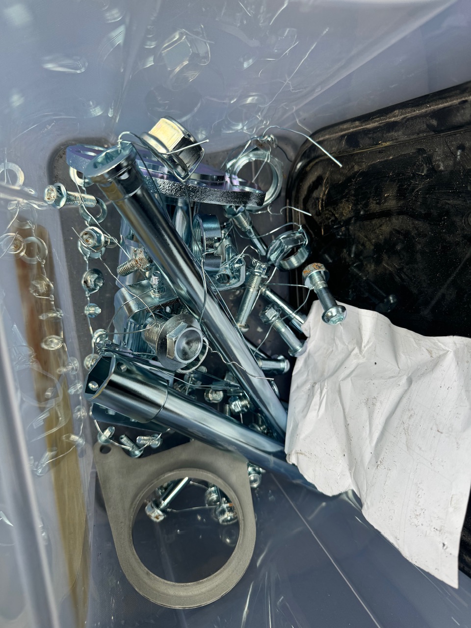 Dropped off my frame and swingarm for powder-coating today and collected my refinished bolts. A few nuts not quite good enough but other than that I’m very happy.