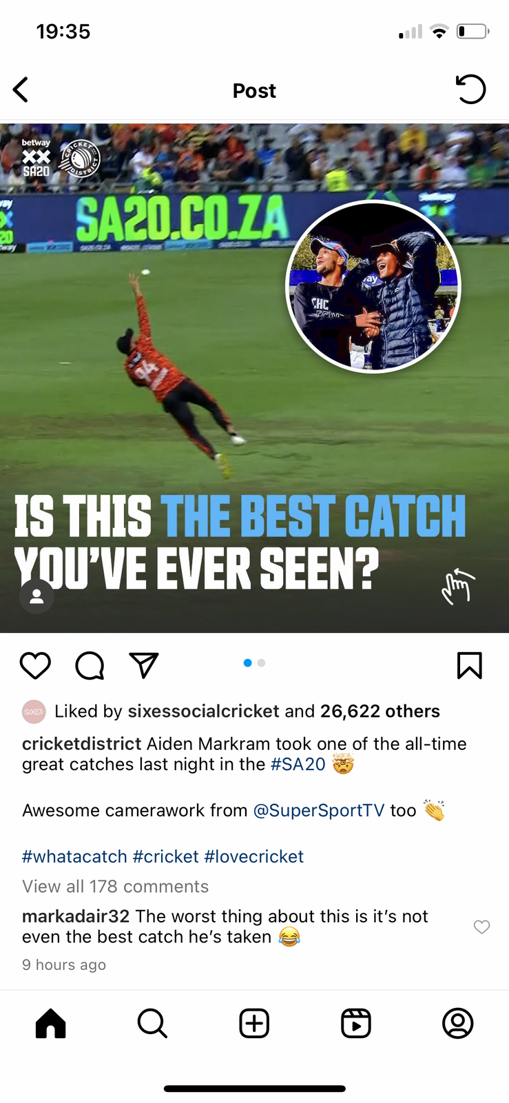 Speaking of catches, I’m going to breach protocol and sneak in a cricket video on a boxing thread, but this absolute worldie from yesterday is worth seeing. Click link for vid….. https://www.instagram.com/p/C3Cu97rN8s-/?igsh=MzRlODBiNWFlZA==