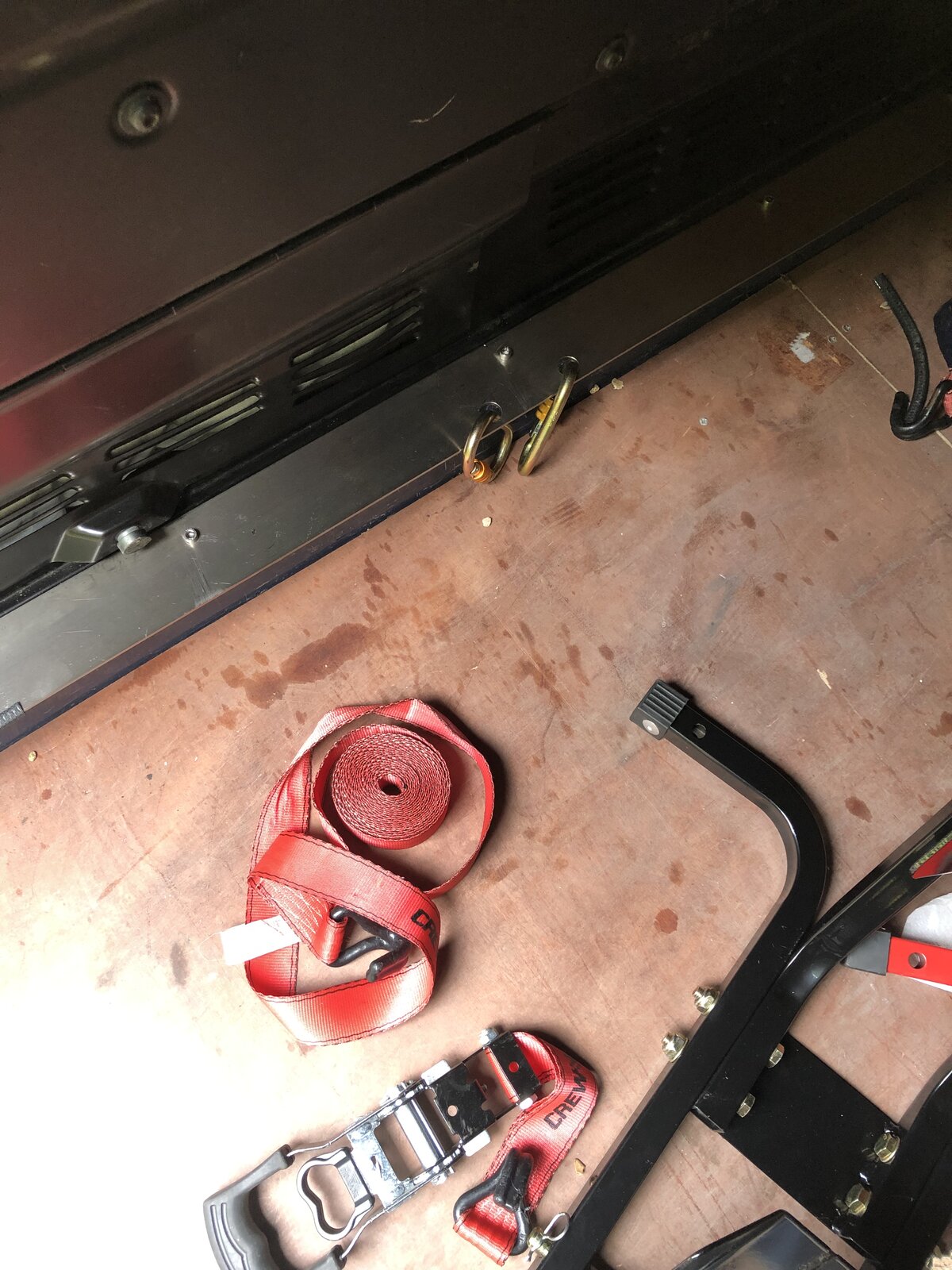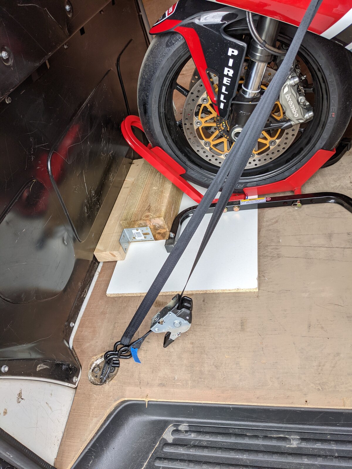 My quest was not to secure the wheel chocks (I just butt it up against the bulkhead) but to get a tie down point(s) in the middle of the van (front obvs). I can’t see any benefit in securing the chocks as if you ratchet the bike forwards again the bulkhead it’s not going anywhere.
