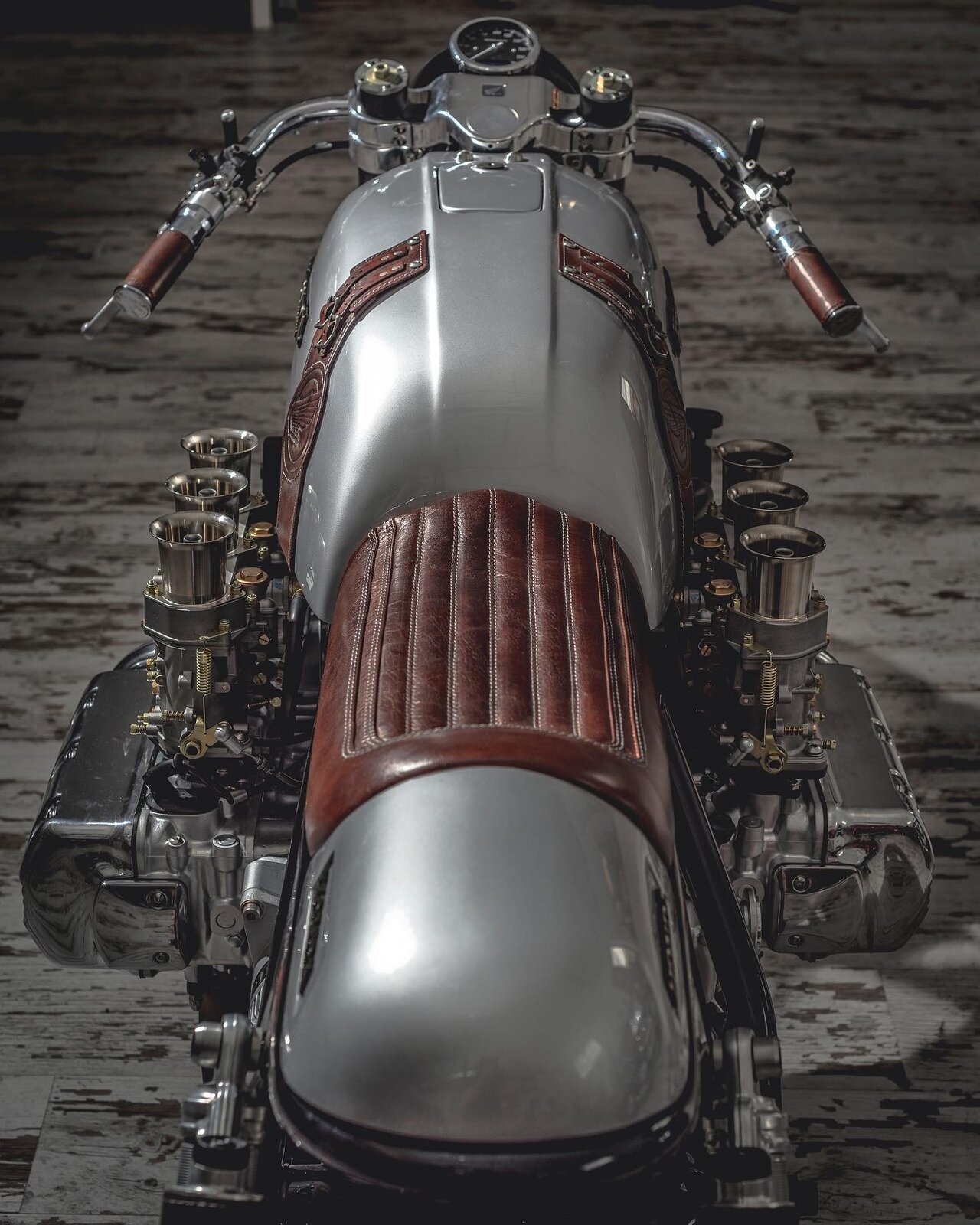 “Kenzo” by Death Machines of London. The quality of the work and the artistry of some of the detailing is out of this world. It’s worth checking out their website just to marvel at the photos of and read the story behind the speedometer, never mind the rest of the bike (which started life as a 1977 Gold Wing). https://dmolcustoms.com/pages/kenzo