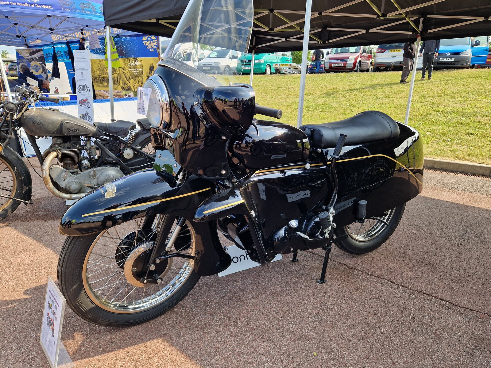 Yes, Series D Vincents including the Black Prince and Black Knight faired models had a lever operated centre stand, much like the ones fitted to some Rudge models in the 1930s.