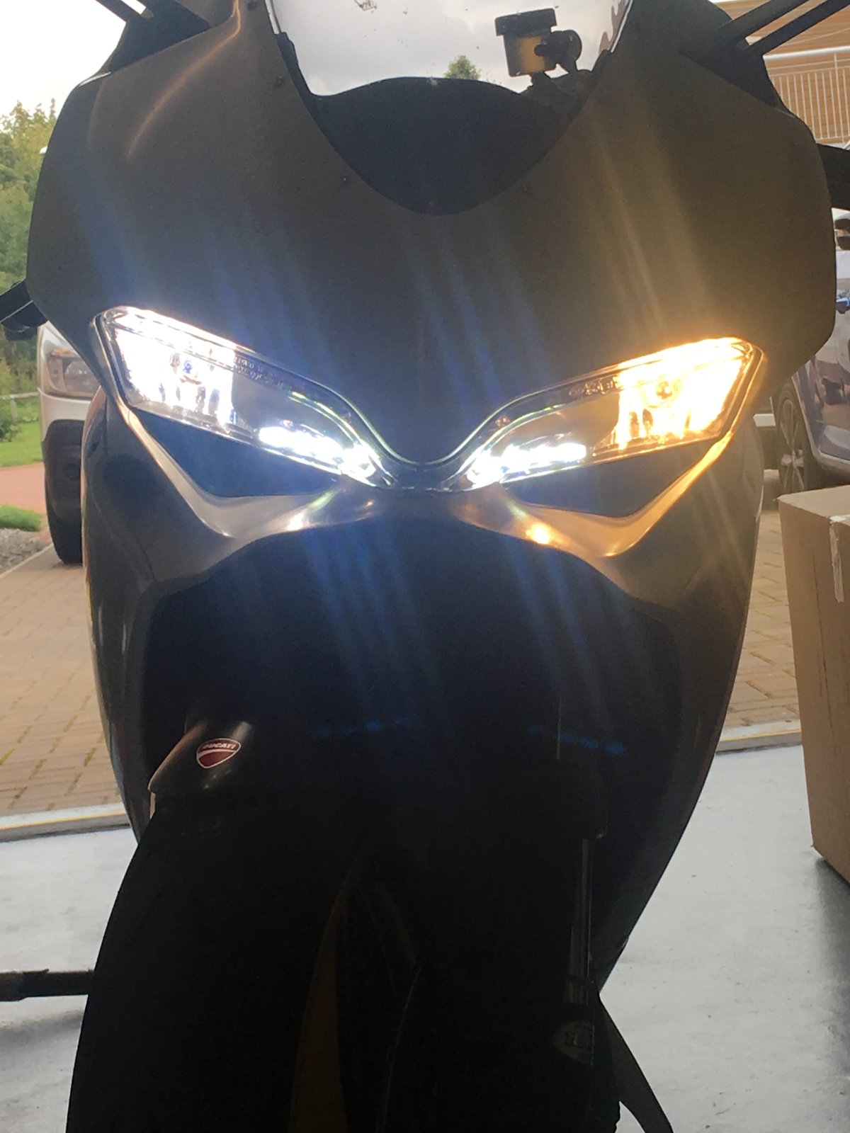 4. Fitted some new headlight bulbs today. The yellowish standard bulbs have been bugging me since the bike was new but never got round to changing them.