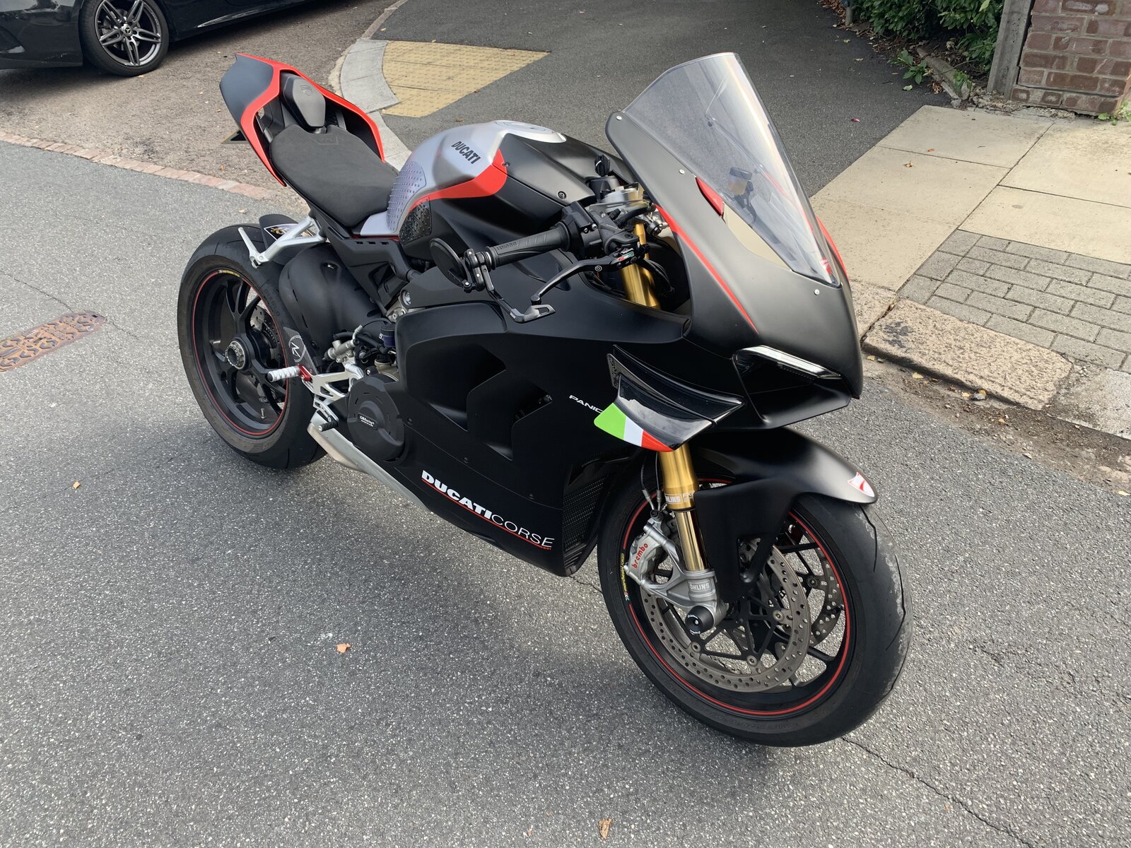 V4 base model complete… Ohlins front & Rear & damper Marchesinis CORSA Corta MC Jet prime switches Evo2 traction software Evo tech radiator guard Lightech rearsets Carbon swingarm protection Ducati Panigale V4-SP Paint job Battery’s been playing Up lately… So no riding as it’s on route to Ducati Hyside for a new battery. PRAY FOR ME. Need my baby back .